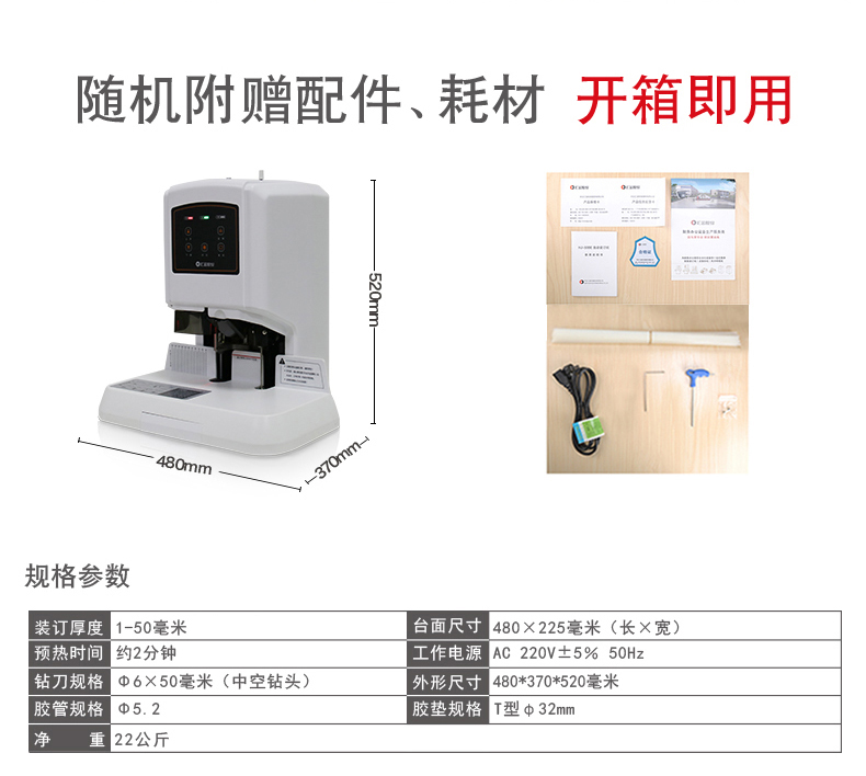 汇金机电(huijin)会计凭证装订机财务档案热熔铆管自动装订机电动打孔机 汇金HJ-50BL 自营
