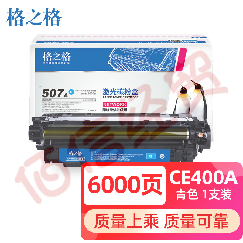格之格 CE401A硒鼓适用惠普M551dn M575c M570dw打印机粉盒 HP507A青色 自营