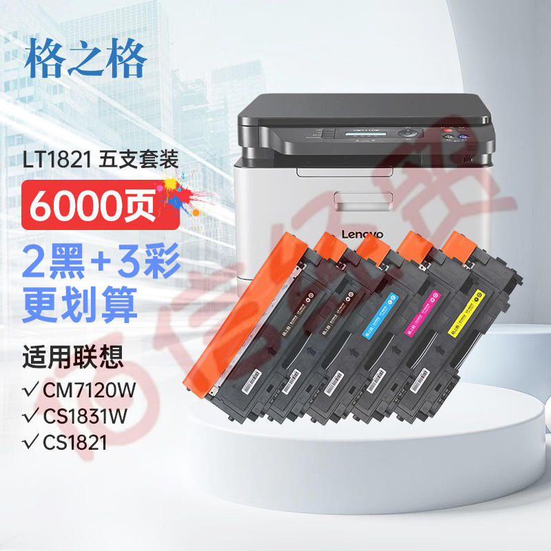 格之格LT1821粉盒适用联想cm7120w墨盒 CS1831W粉盒 CS1821 CS1831硒鼓 CM7110W打印机墨盒大容量五支套装 自营