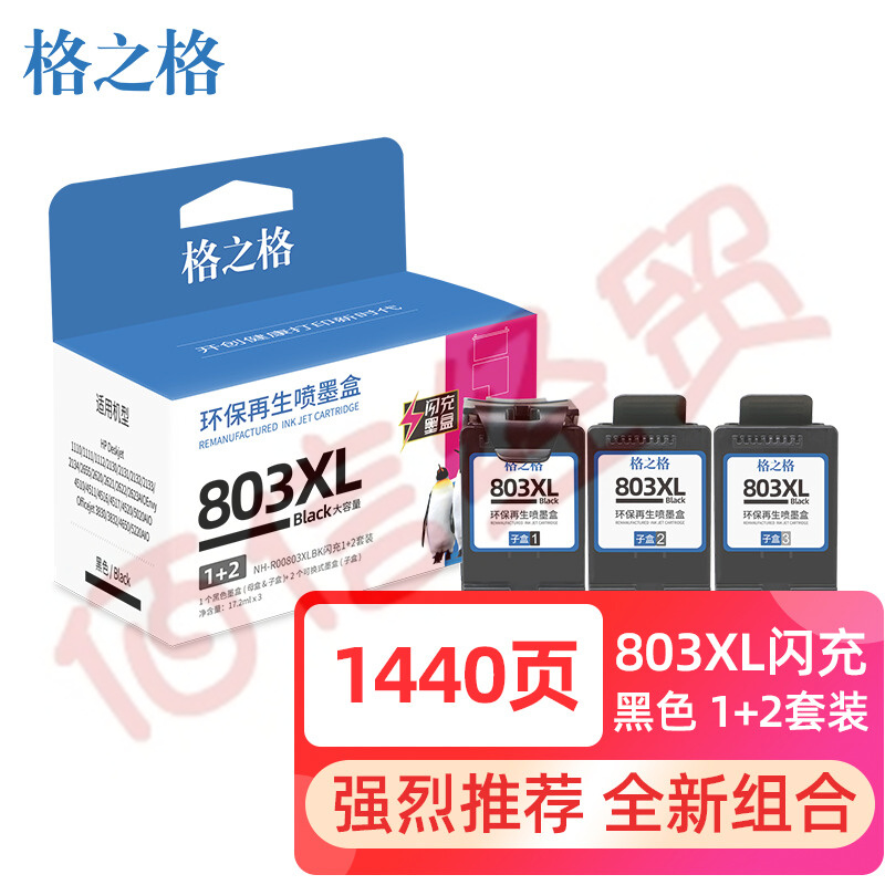 格之格803闪充墨盒适用惠普hp 2622 2621 1111 2132 2600 1112 2130 2131打印机粉盒黑色1+2套装 自营
