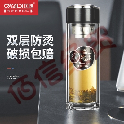 匡迪DKADI双层玻璃杯男女士家用高档商务泡茶车载水杯隔热茶杯透明杯子 黑310ml 自营