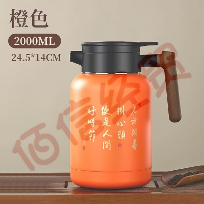 匡迪(DKADI)陶瓷焖茶壶老白茶高档保温壶闷茶壶办公室车载大容量保温水壶水瓶 2000ml橙色 自营