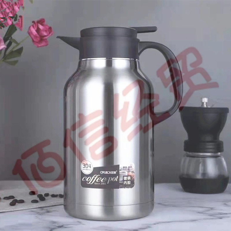 匡迪(DKADI) 匡迪304不锈钢真空保温壶咖啡壶家用大容量热水瓶茶楼办公室水壶 钢本色1800ml 自营