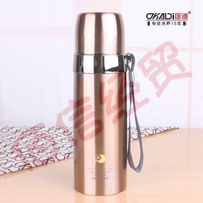 匡迪(DKADI) 匡迪保温杯水杯不锈钢真空保温杯高真空头内304不锈钢手提绳保温杯男女 金色 450ml 自营