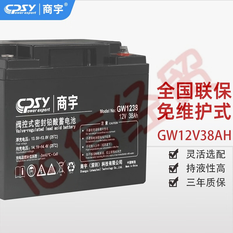 商宇UPS电池 GW1238阀控式密封铅酸ZR蓄电池12V38AH 适用于UPS不间断电源 支持定制 自营