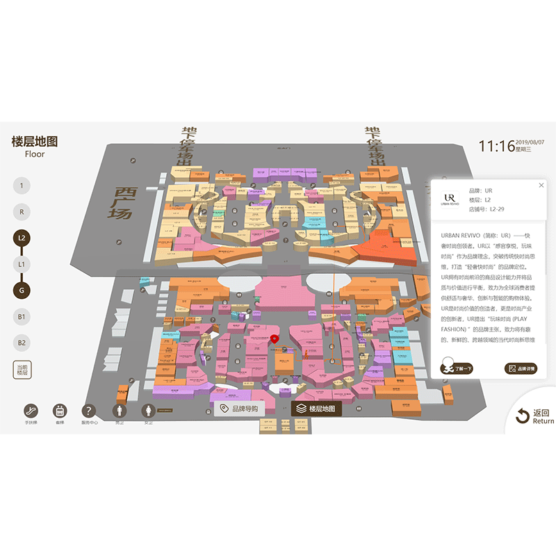 恩腾商场导航软件标识导向路线图自助查询楼层地图导航终端一体机系统商场地下室停车场导航软件 楼层索引机 定制款横屏 自营