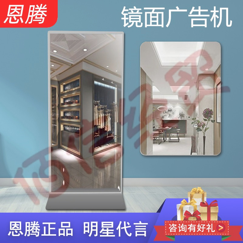 恩腾智能镜面广告机多媒体公共智能镜显示屏人体感应浴室镜魔人体感应网络高清镜面显示屏试衣镜壁挂广告 43英寸单机版 自营