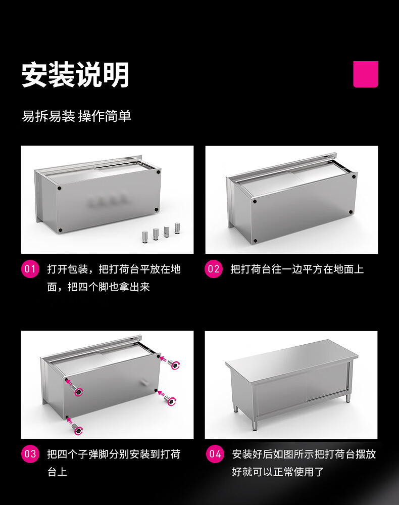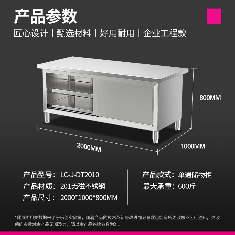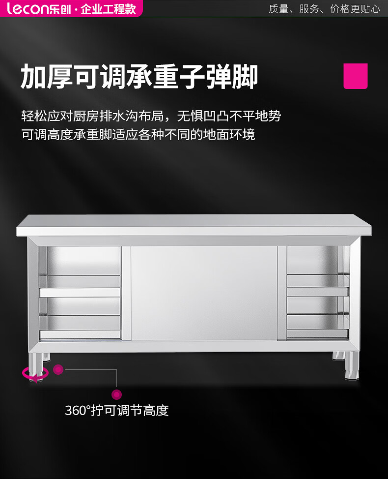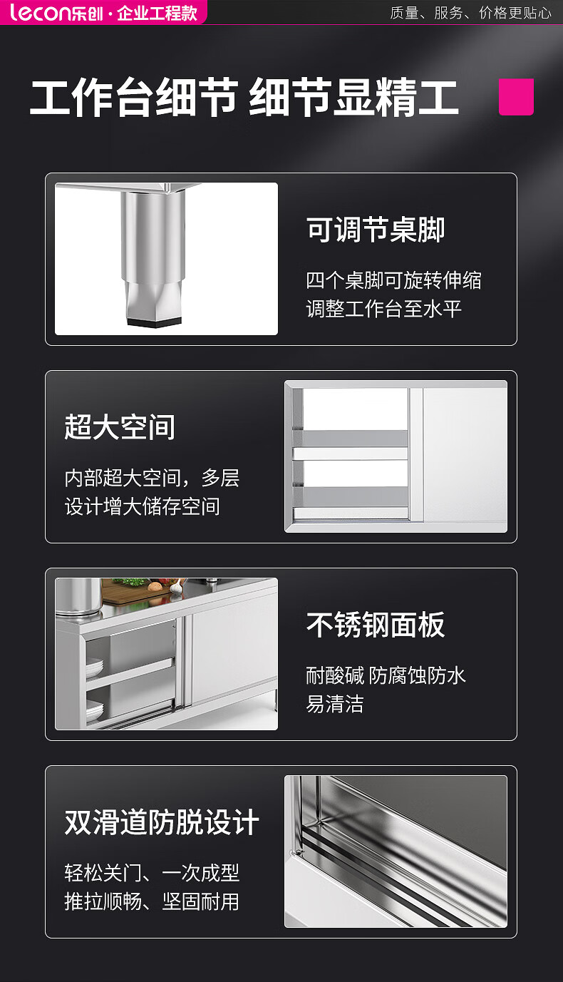 乐创(lecon)商用单通工作台 201不锈钢打荷工作台2000*1000 LC-J-DT2010【企业工程款】 自营