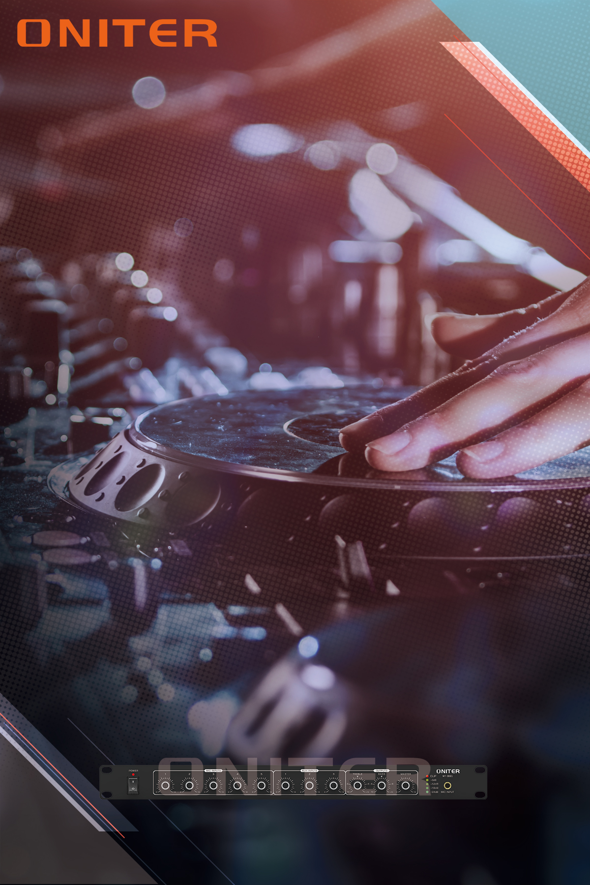 2、设有高音(TRFBLE)和低音(BASS)独立调节,主音量(MASTER)整体调节;