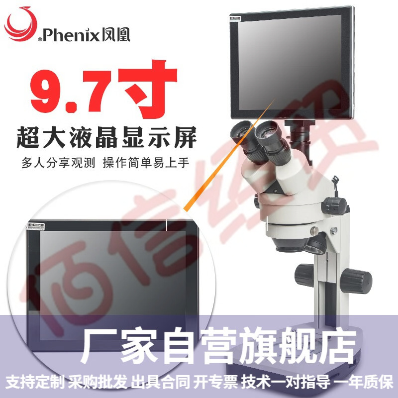 Phenix凤凰三目体视显微镜XTL-165-MT连续变倍高清光学放大镜电路板检测手机维修生物解剖 套餐6:特配+9.7寸显视屏(内置500万像素) 自营