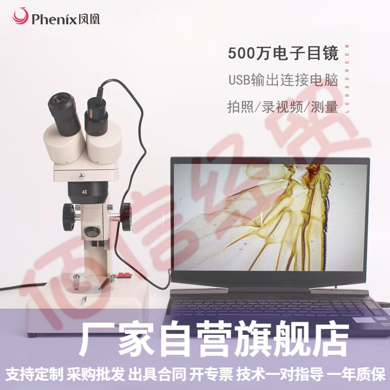 Phenix凤凰双目体视显微镜XT-III-40X定倍上下光源手机钟表维修解剖镜珠宝鉴定纺织工业检测 连接电脑套餐:标配+500万电子目镜/含软件可拍照 自营