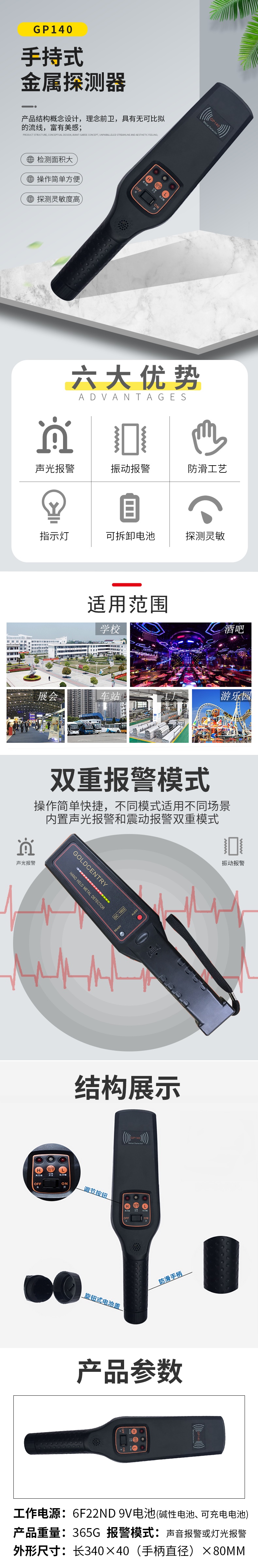 中科联 DETECTOR ZK 手持式金属探测器GP140 高灵敏度金属检测仪危险品安检仪手机探测仪 自营