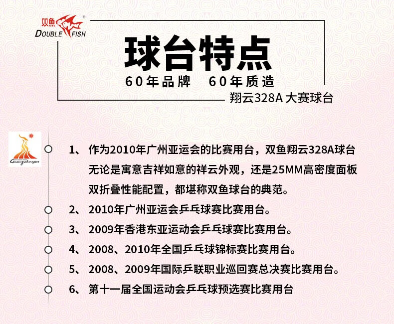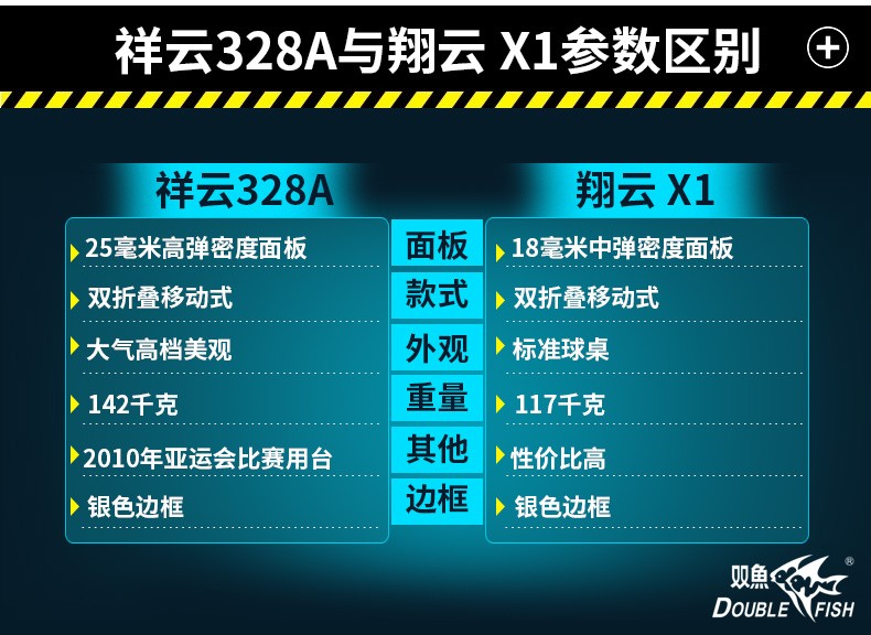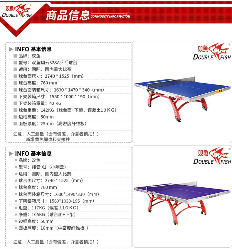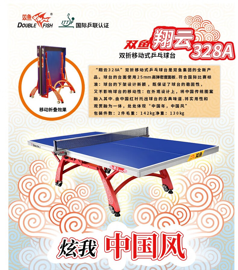 双鱼(DOUBLE FISH)乒乓球桌328A大赛ITTF认证标准室内乒乓球台移动双折叠式乒乓球案子 自营