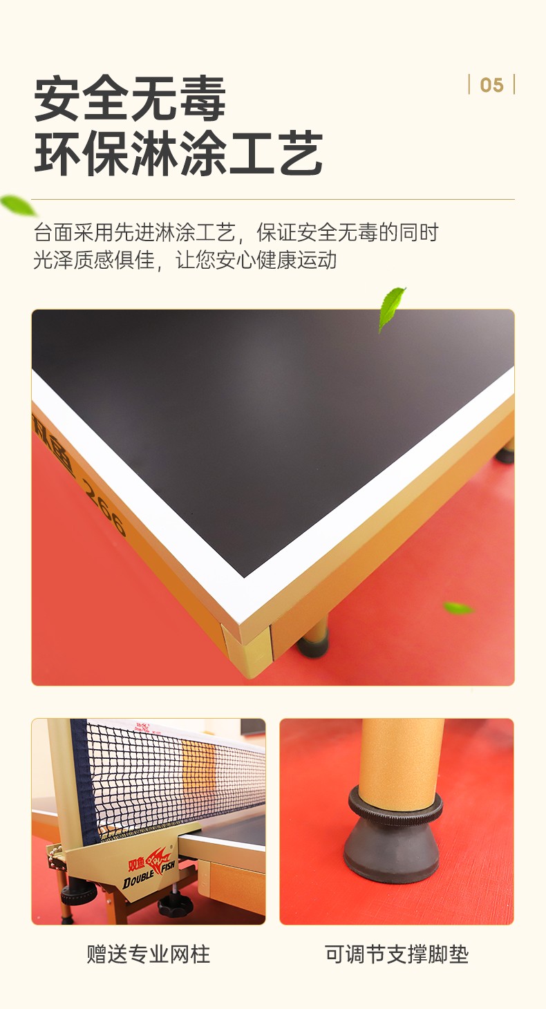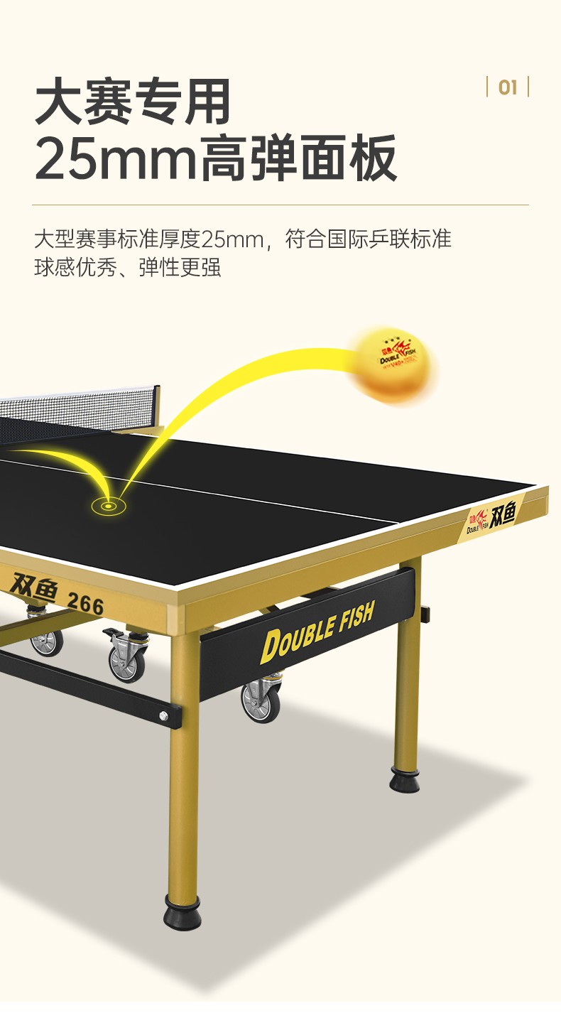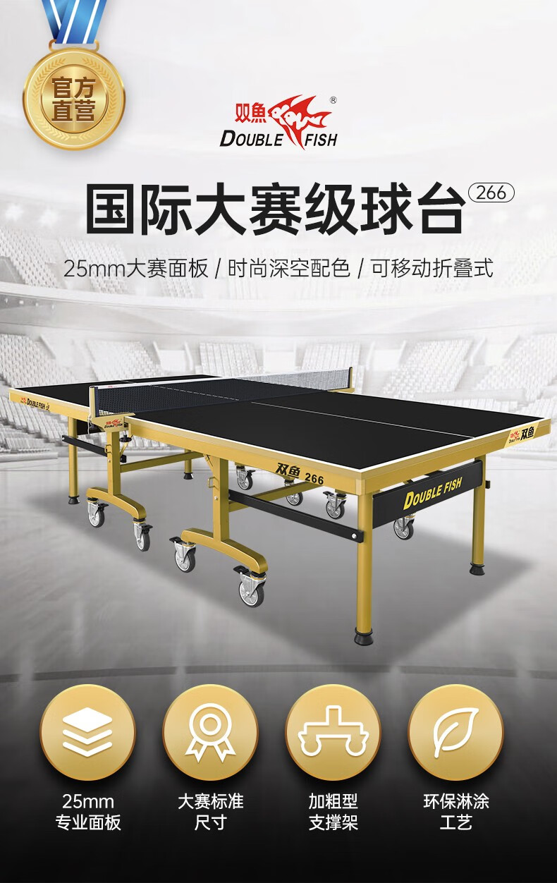 双鱼(DOUBLE FISH) 【新品球桌】大赛标准乒乓球桌可移动折叠式室内案子家用训练比赛乒乓球台 【大赛款】266-25MM 自营