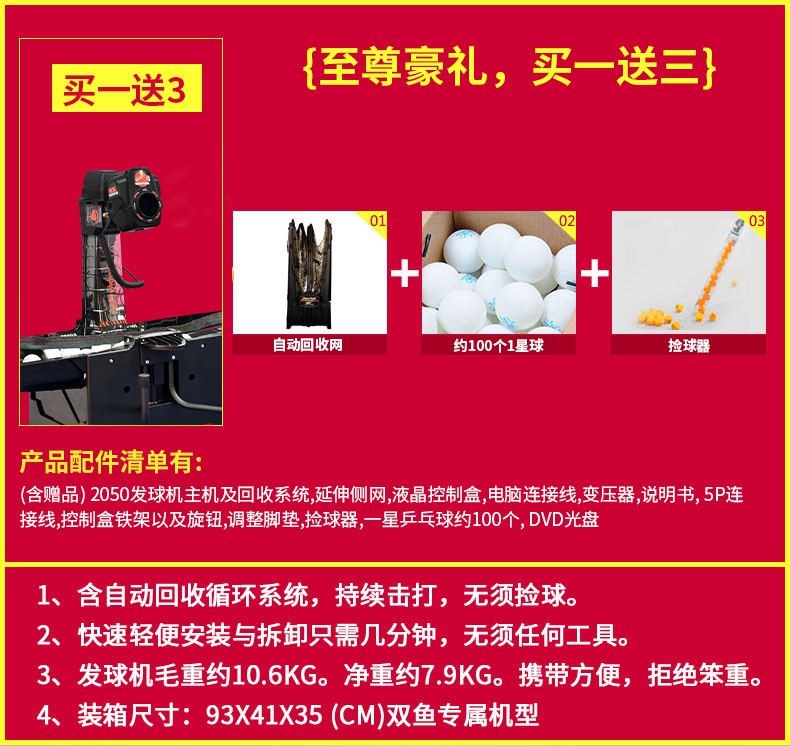 双鱼(DOUBLE FISH) 双鱼-乐吉智能发球机 乒乓球发球器 可编程 自动回收 含乒乓球 2050 自营