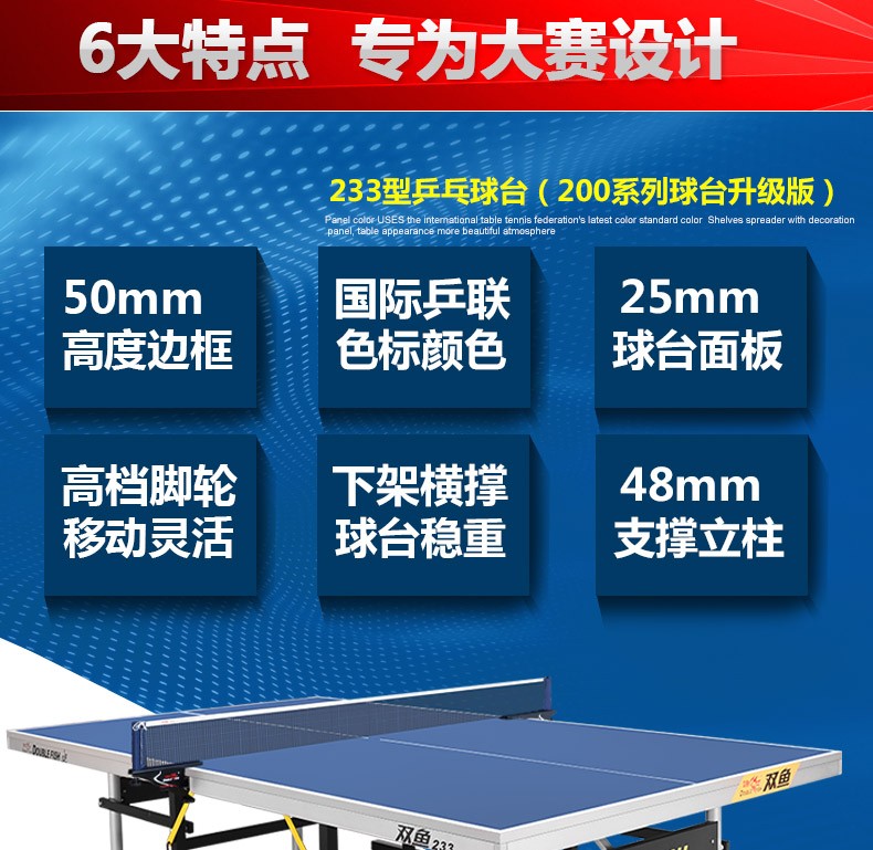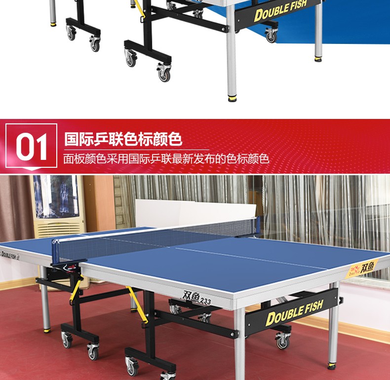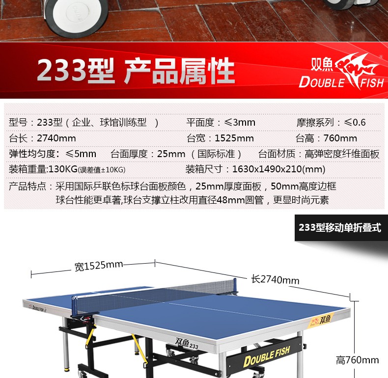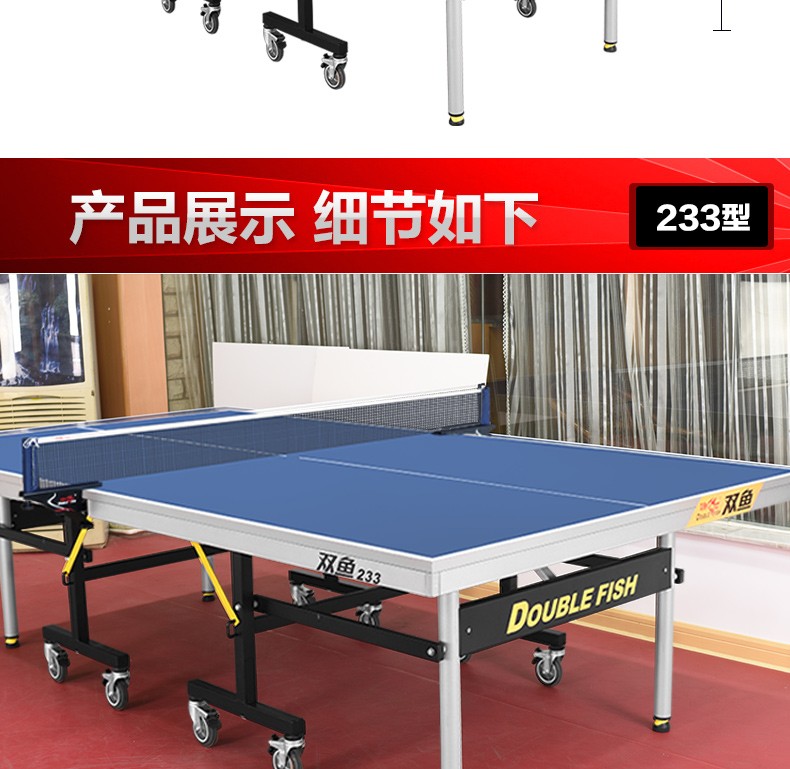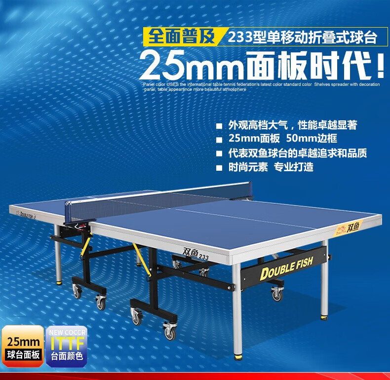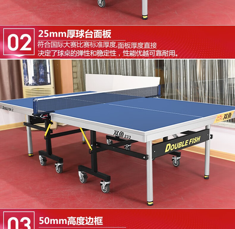 双鱼(DOUBLE FISH) 乒乓球桌233大赛标准ITTF认证乒乓球台室内可移动折叠乒乓球案子 自营
