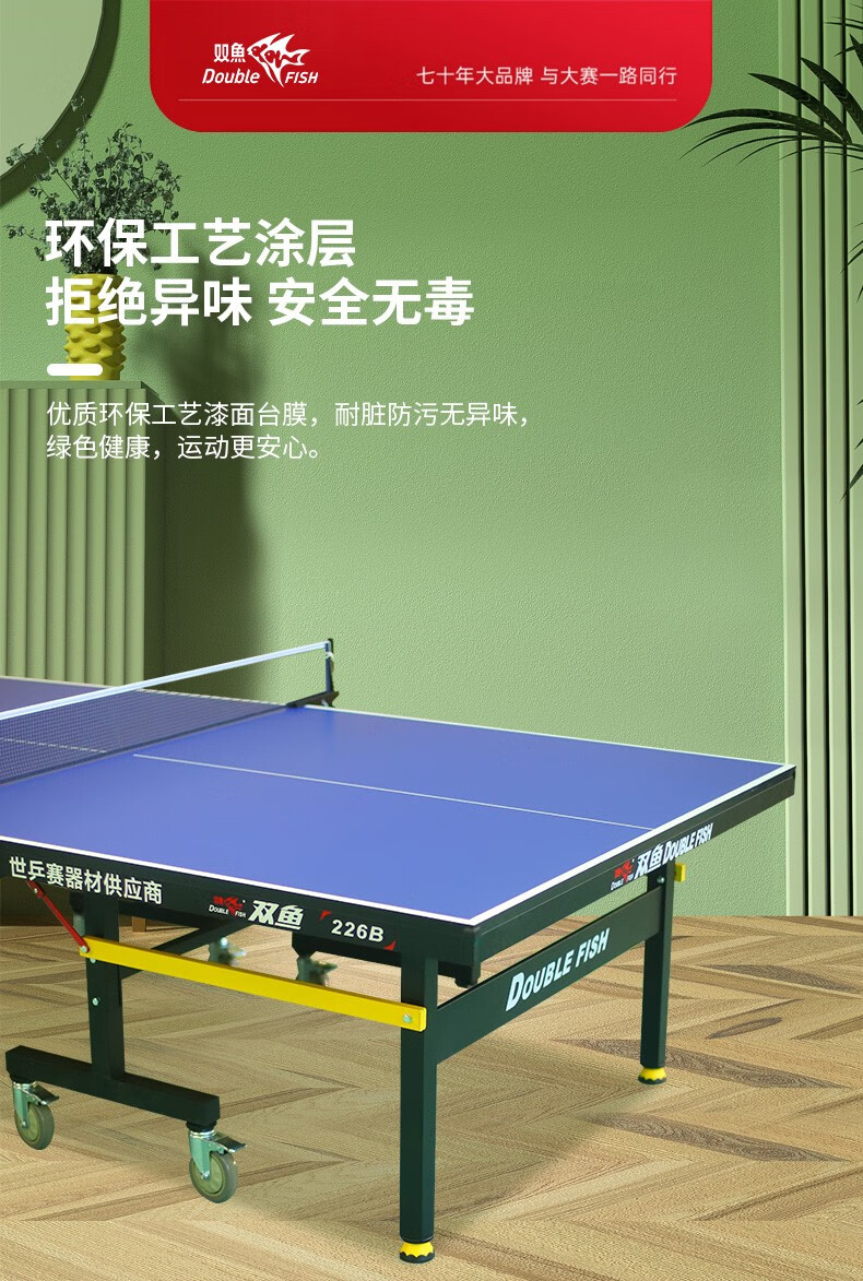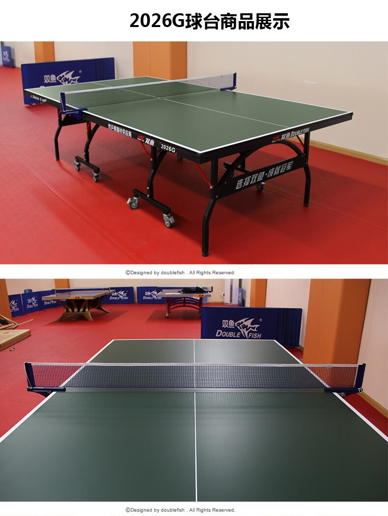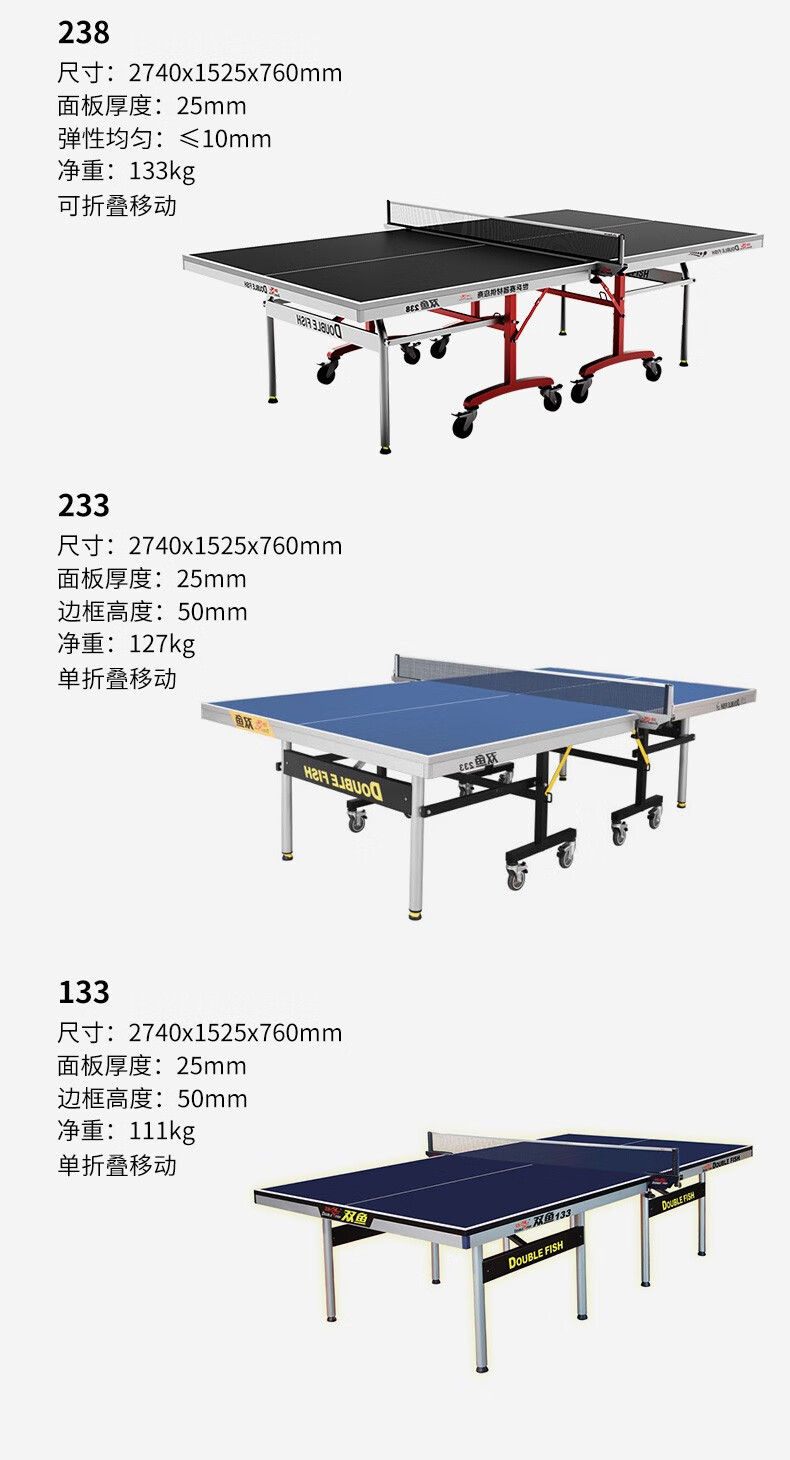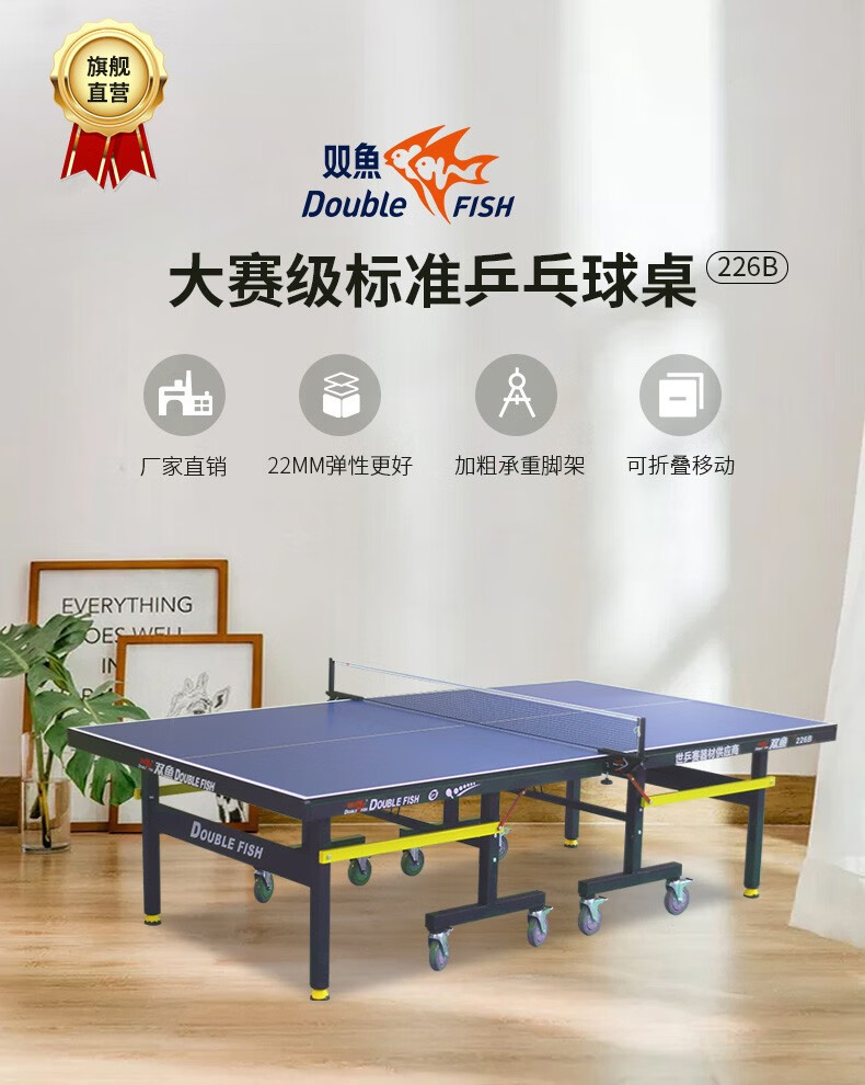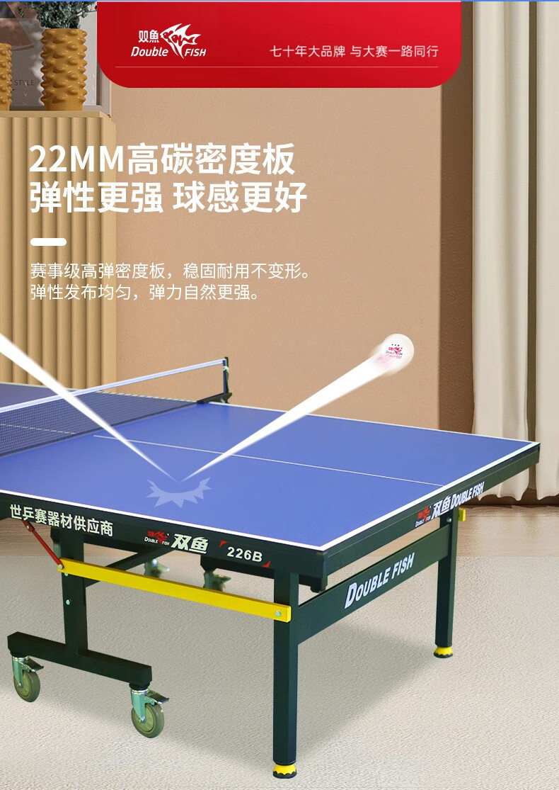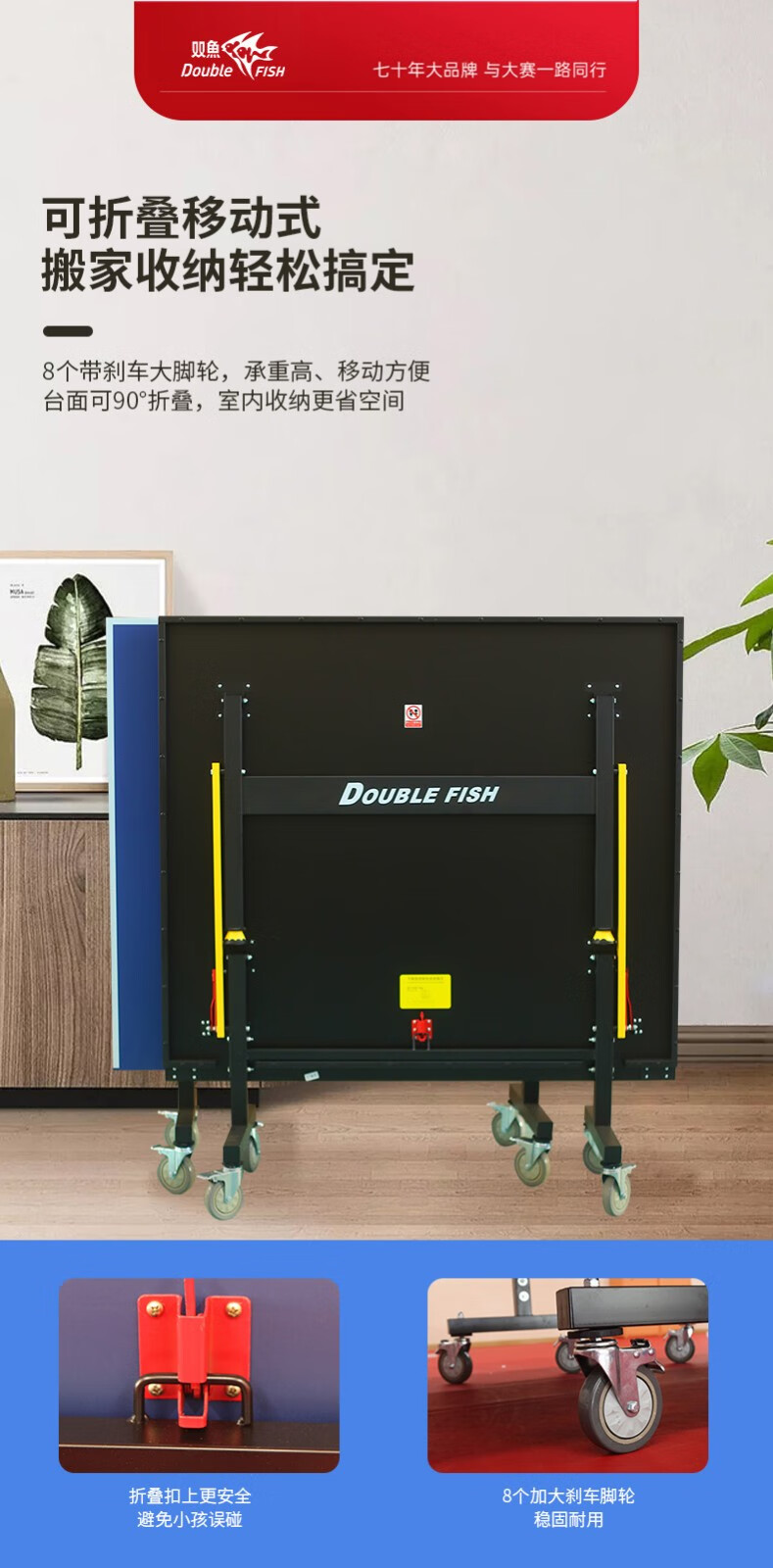 双鱼(DOUBLE FISH) 乒乓球桌室内可折叠移动式乒乓球台家用训练比赛标准乒乓球案子 238球台-25MM桌面【含网架球网】 自营