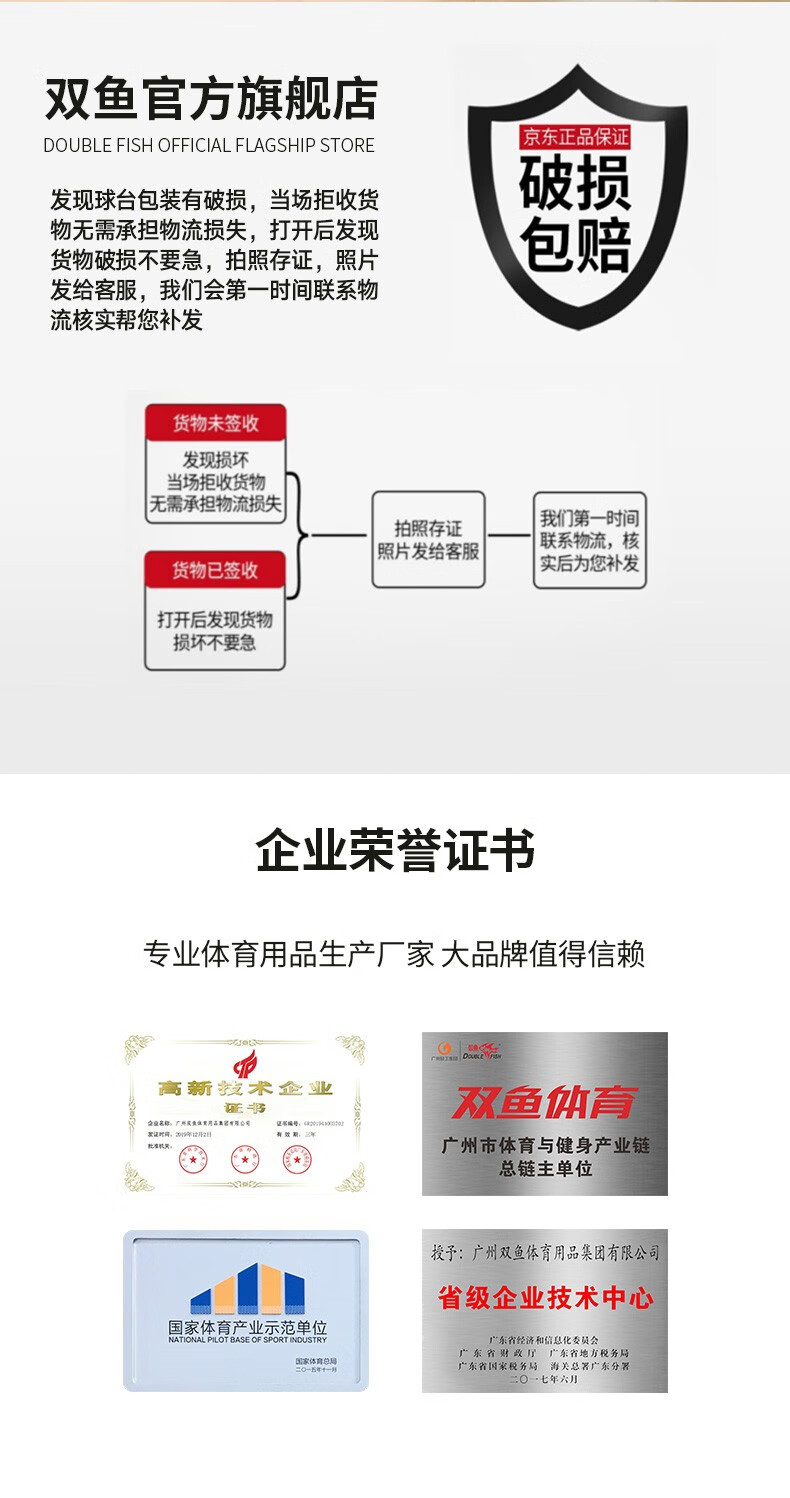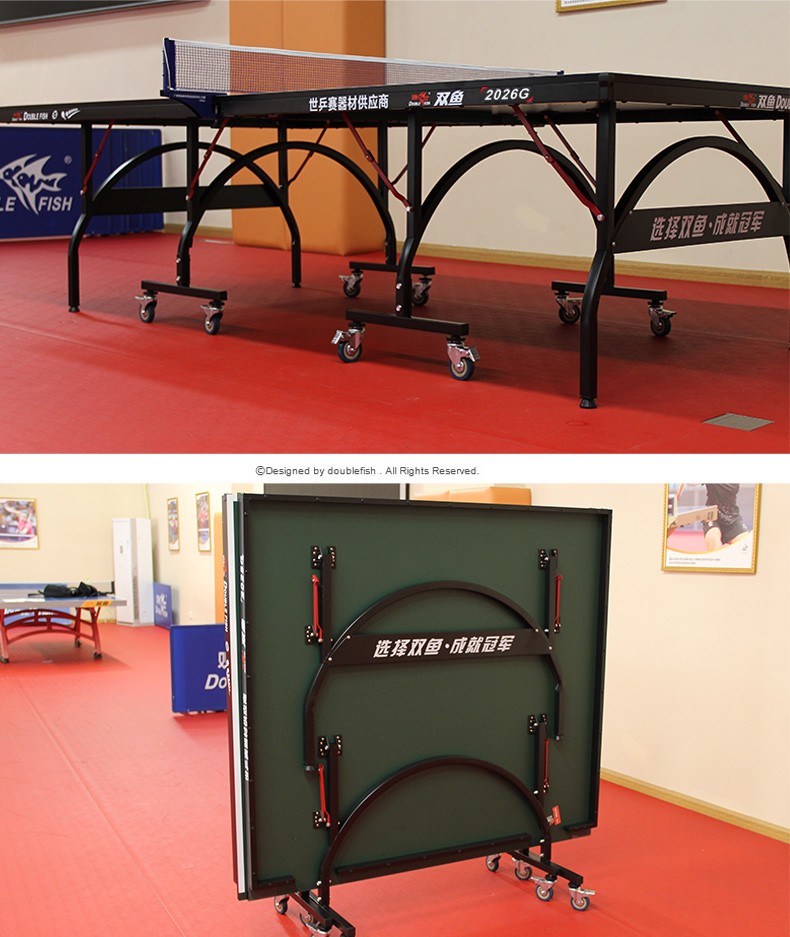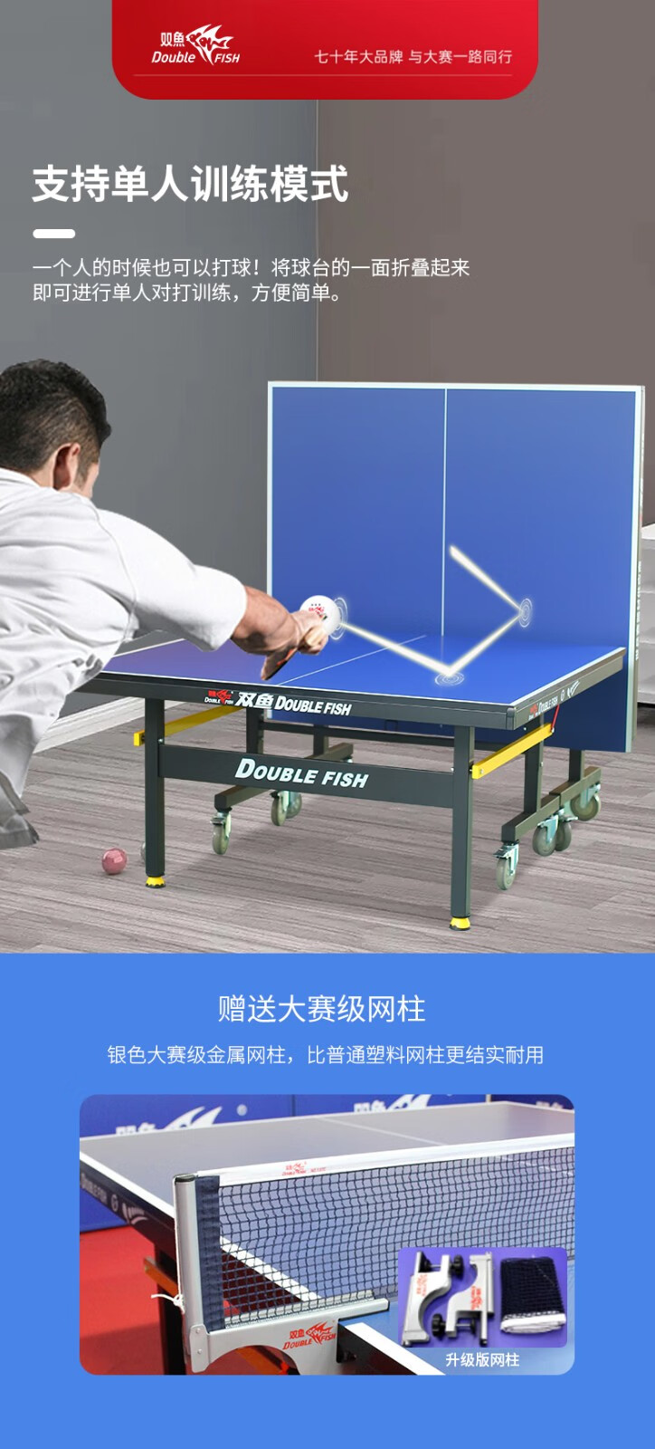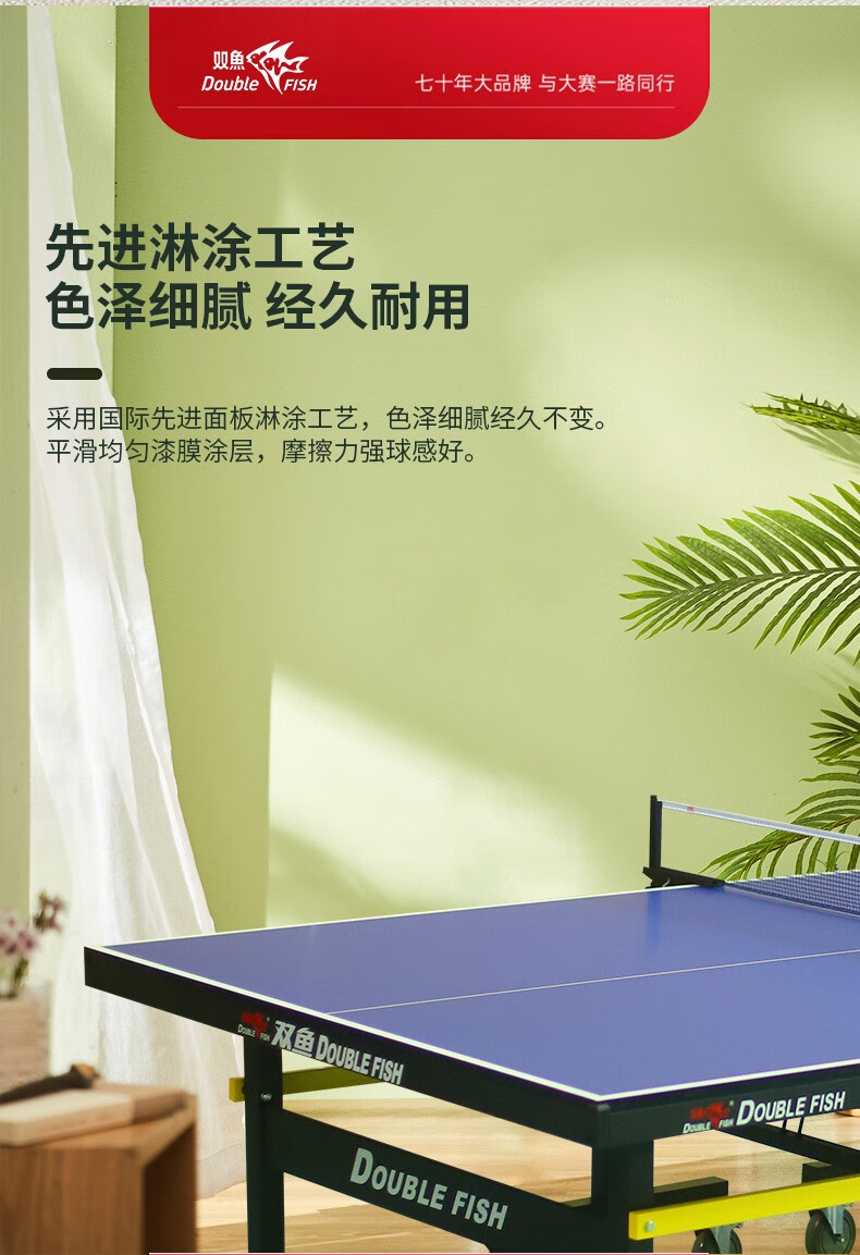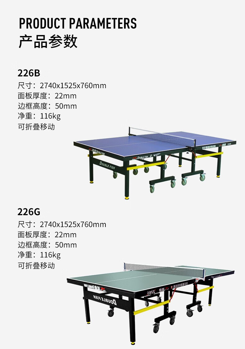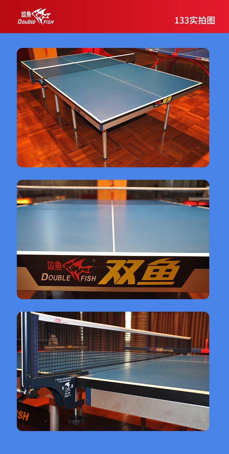 双鱼(DOUBLE FISH) 乒乓球桌室内可折叠移动式乒乓球台家用训练比赛标准乒乓球案子 238球台-25MM桌面【含网架球网】 自营