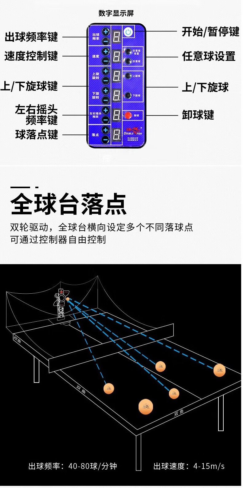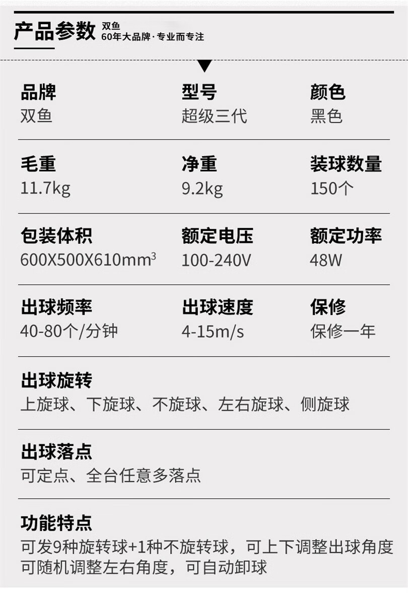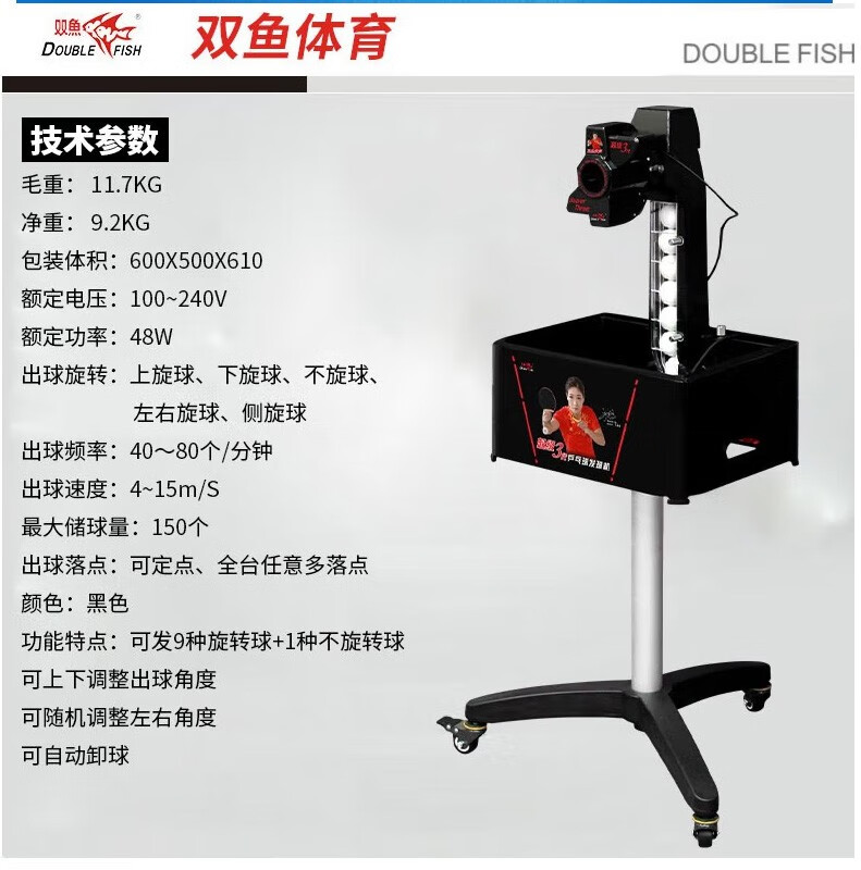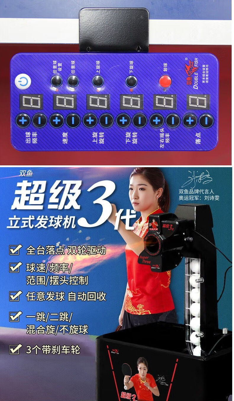 双鱼(DOUBLE FISH) 乒乓球训练器发球机家用自动乒乓球发球器落地式含乒乓球 捡球网 【遥控版】超级3代落地式发球机 自营