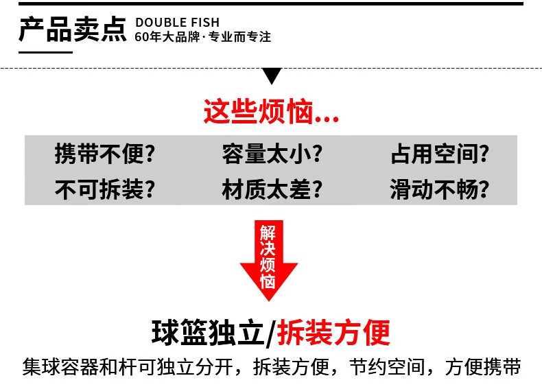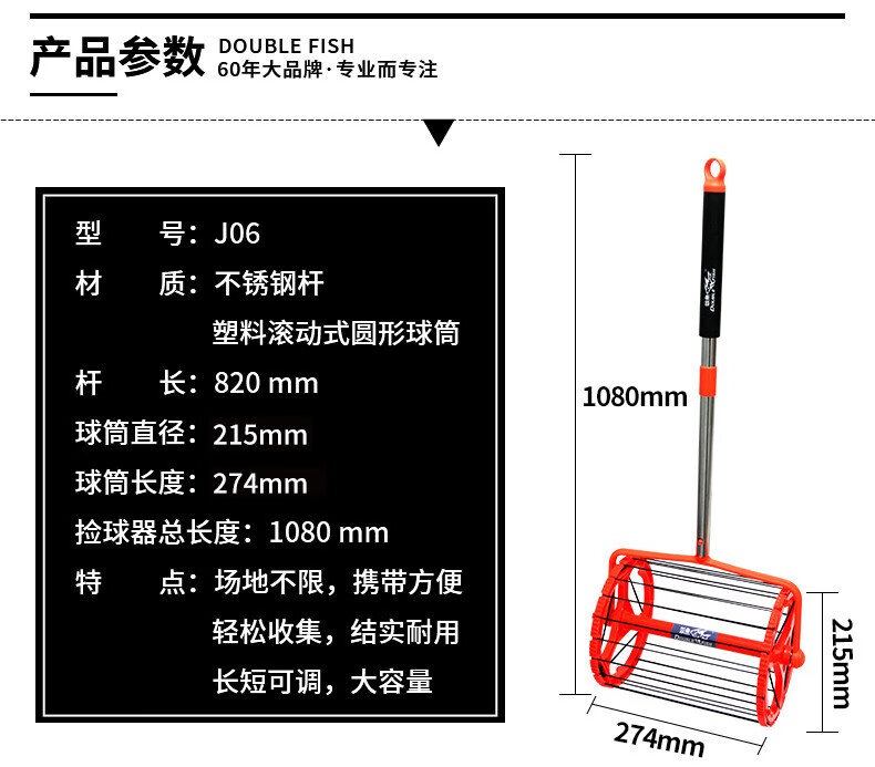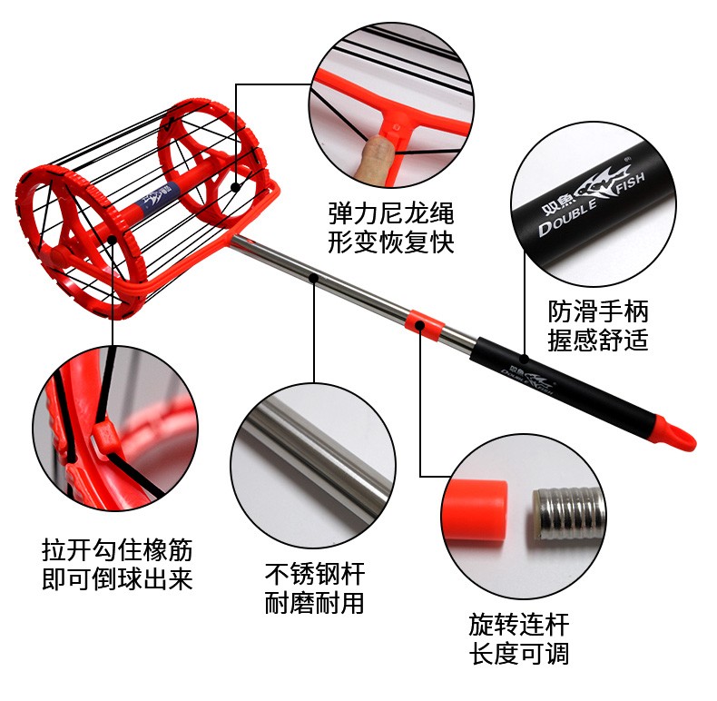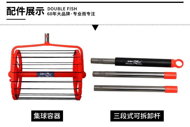 双鱼(DOUBLE FISH) 滚轮式乒乓球捡球器 轻便乒乓球拾球器捡球神器三节式捡球网 颜色随机发 移动式滚动捡球器 自营