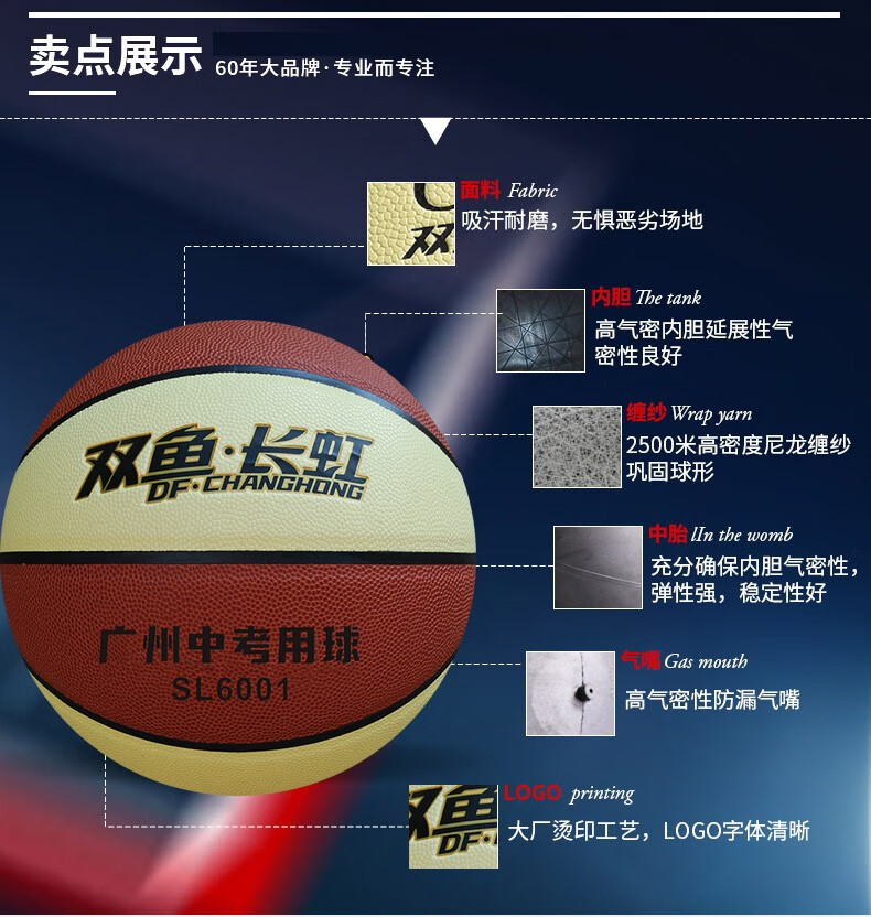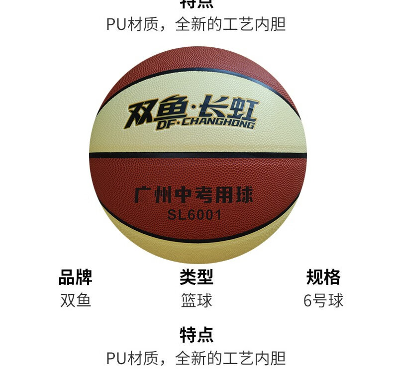 双鱼 长虹长虹足球篮球排球 2021年广州市体育中考考试用球 SL6001-6号篮球 自营