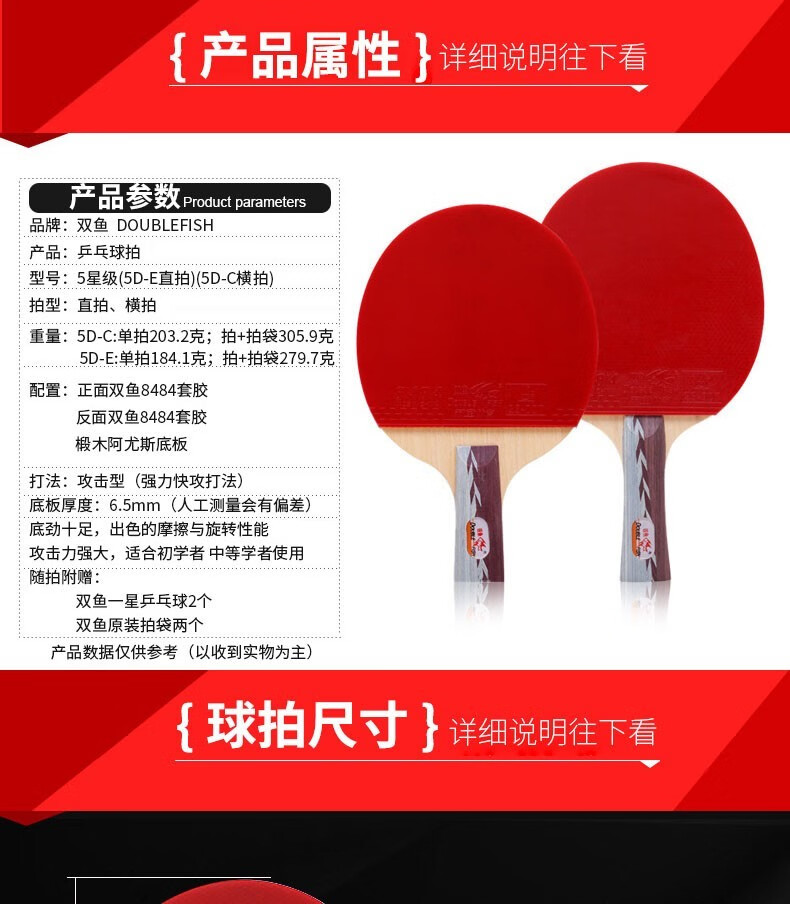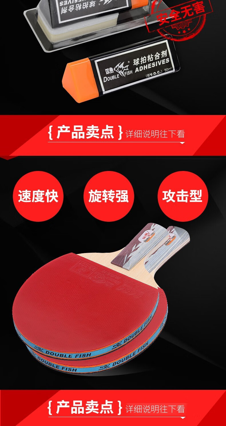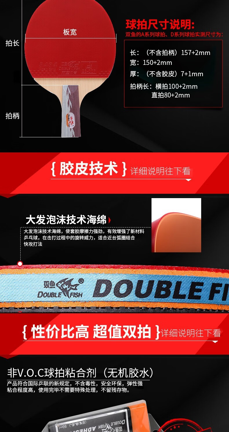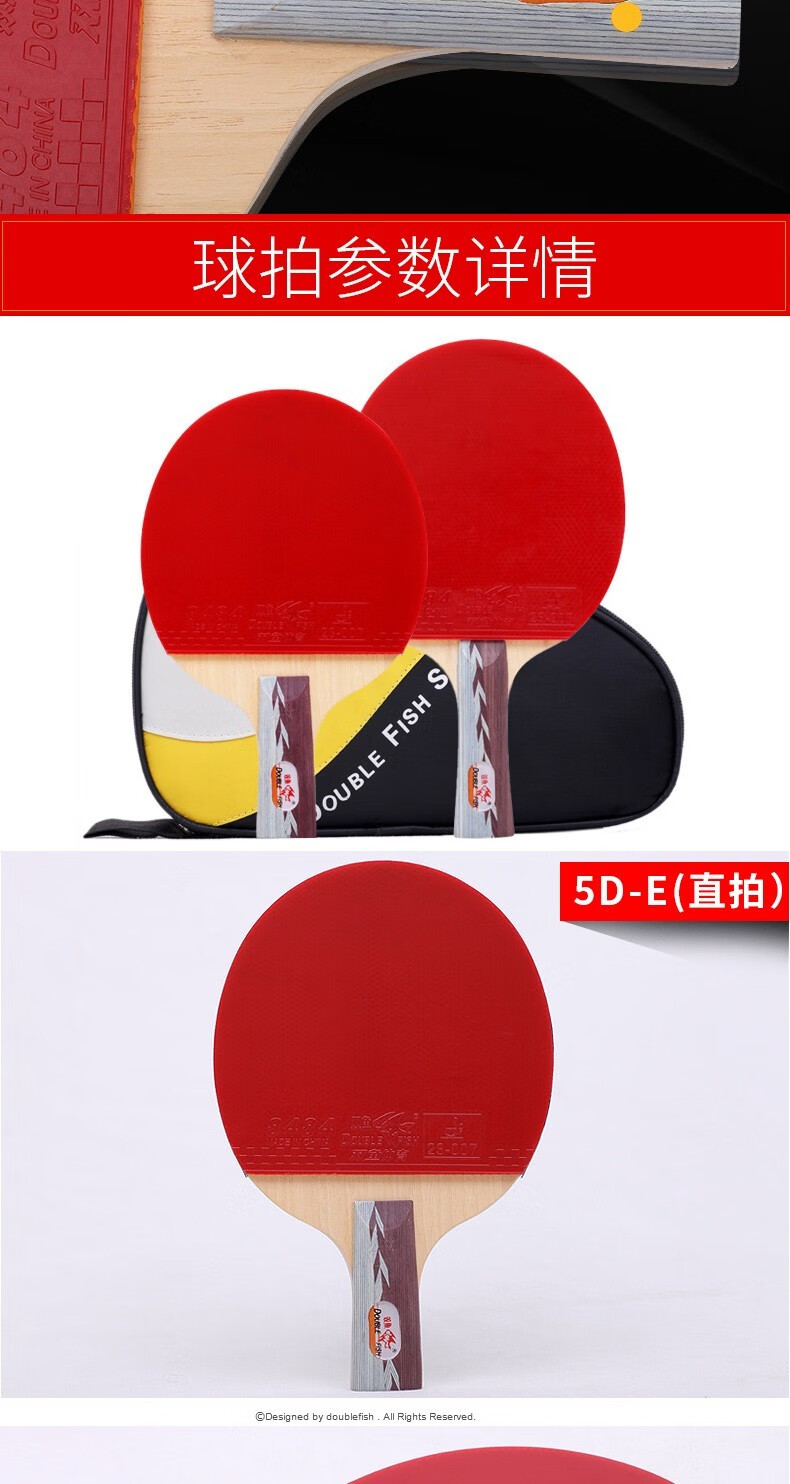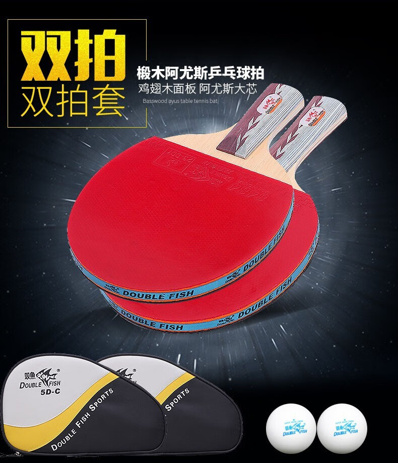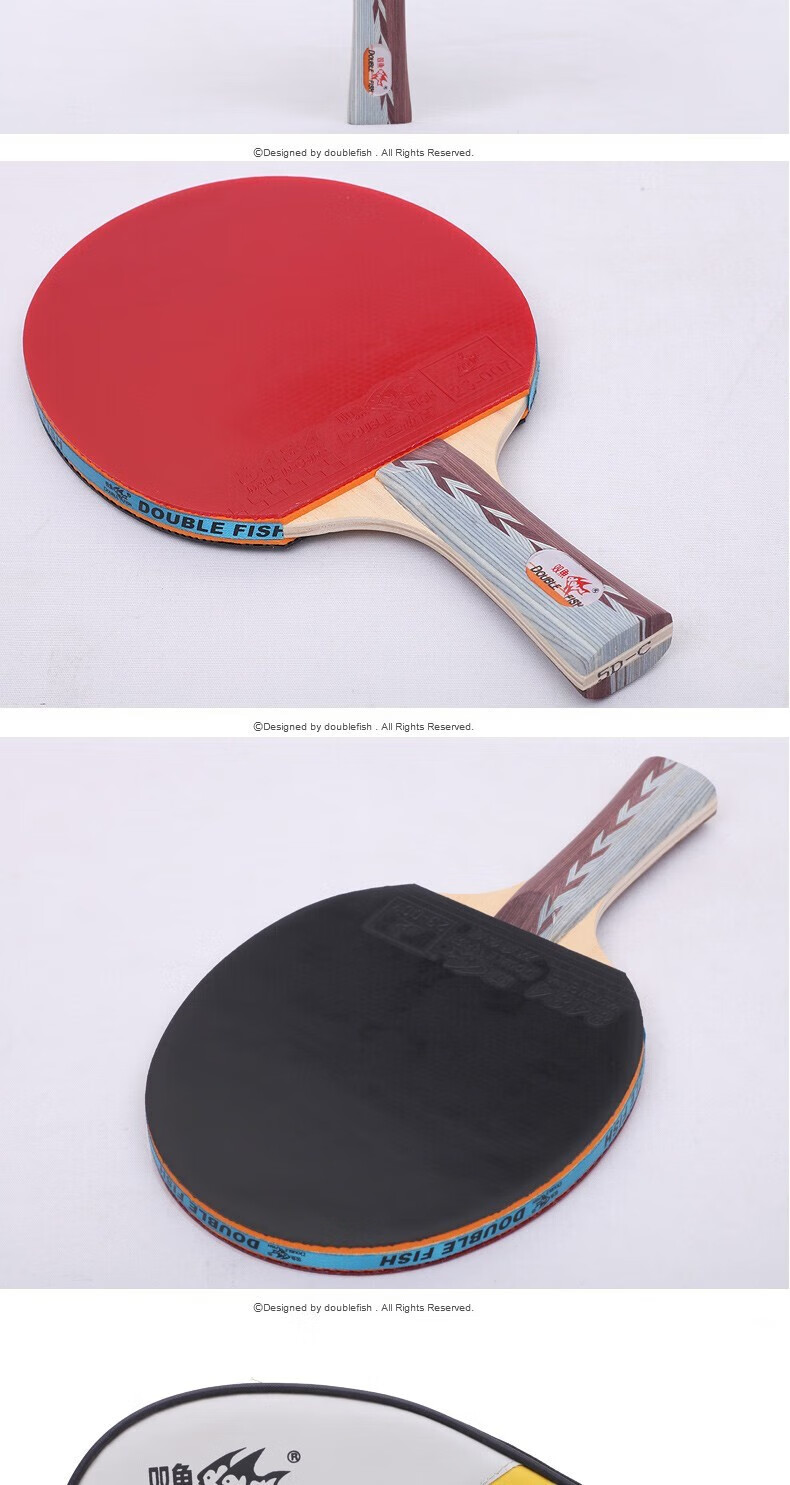 双鱼(DOUBLE FISH)5D乒乓球拍双拍套装附拍袋乒乓球 一横一直 自营