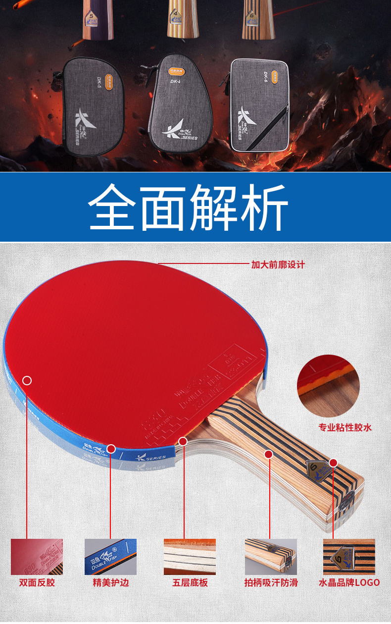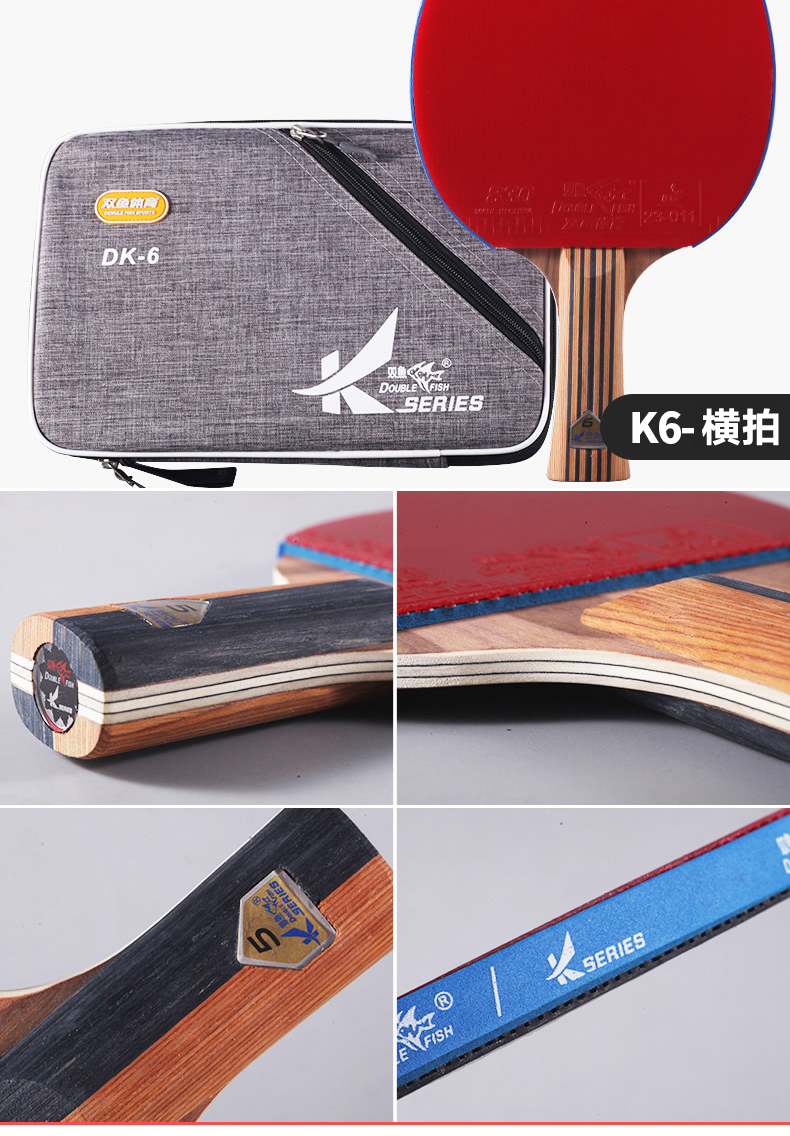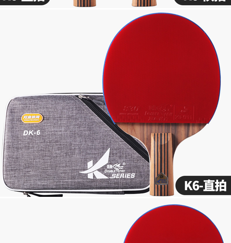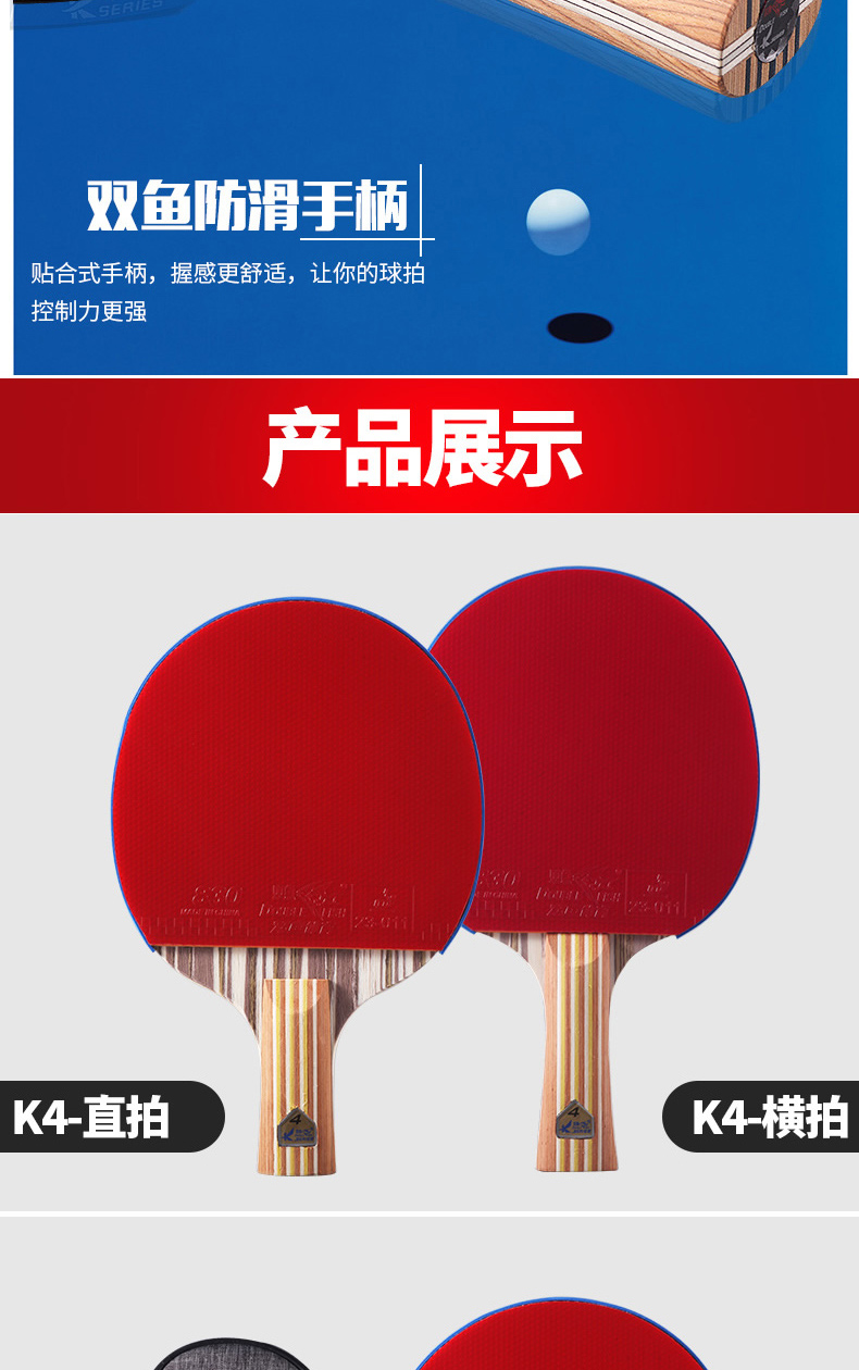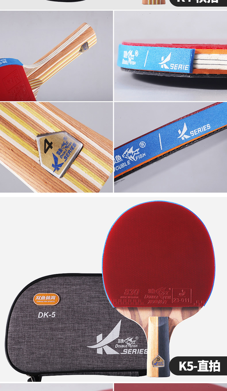 双鱼(DOUBLE FISH) 乒乓球拍单拍双面反胶专业入门级乒乓拍含拍套 K4直拍 自营