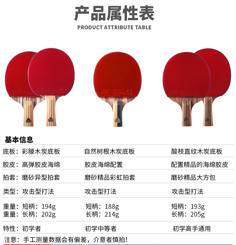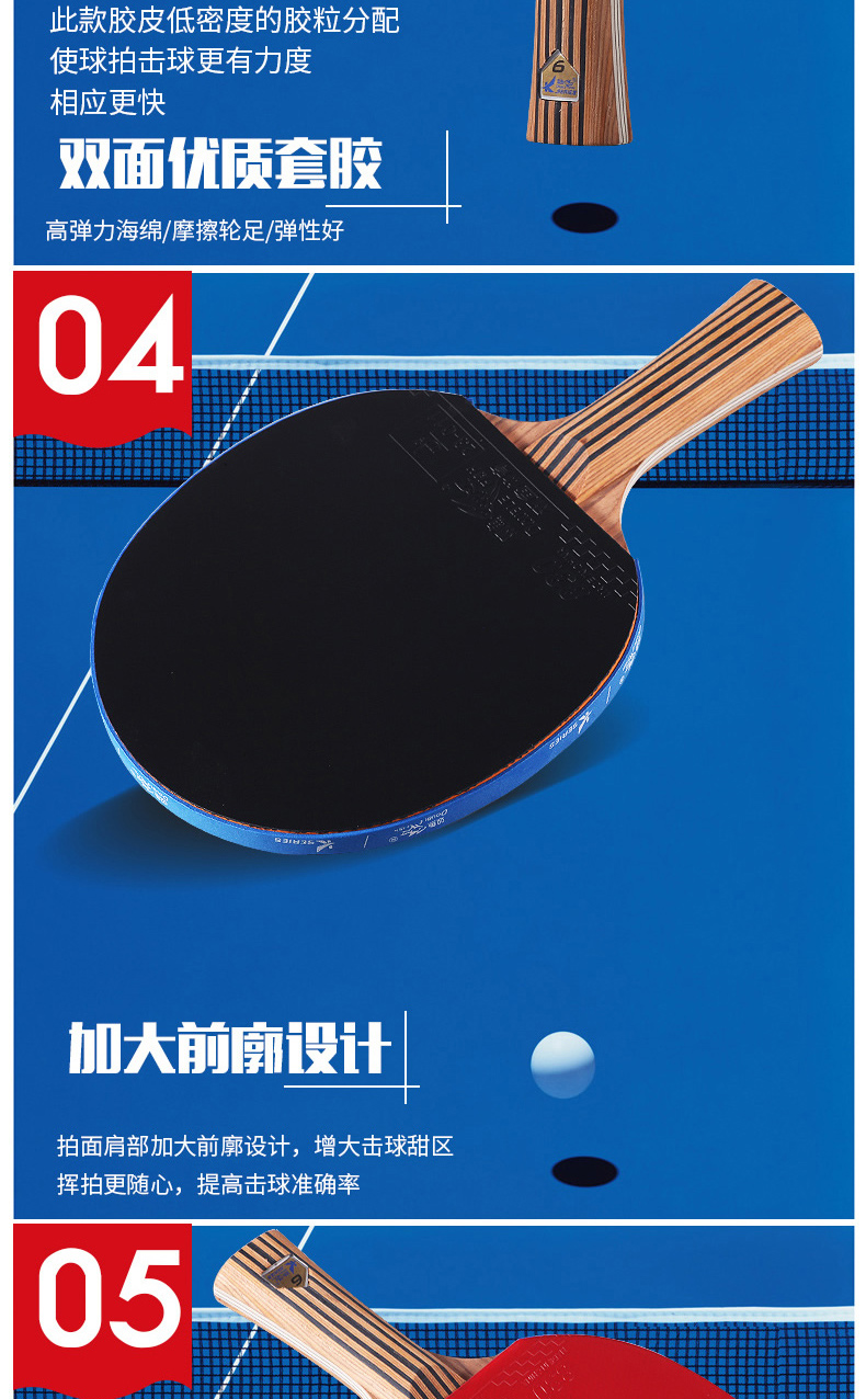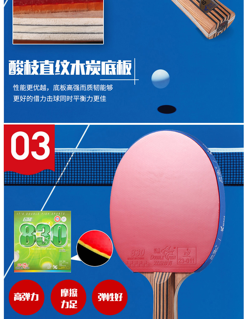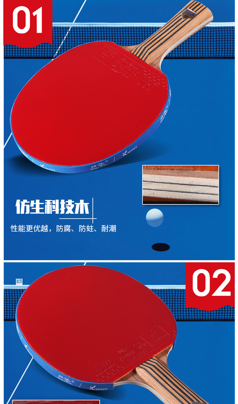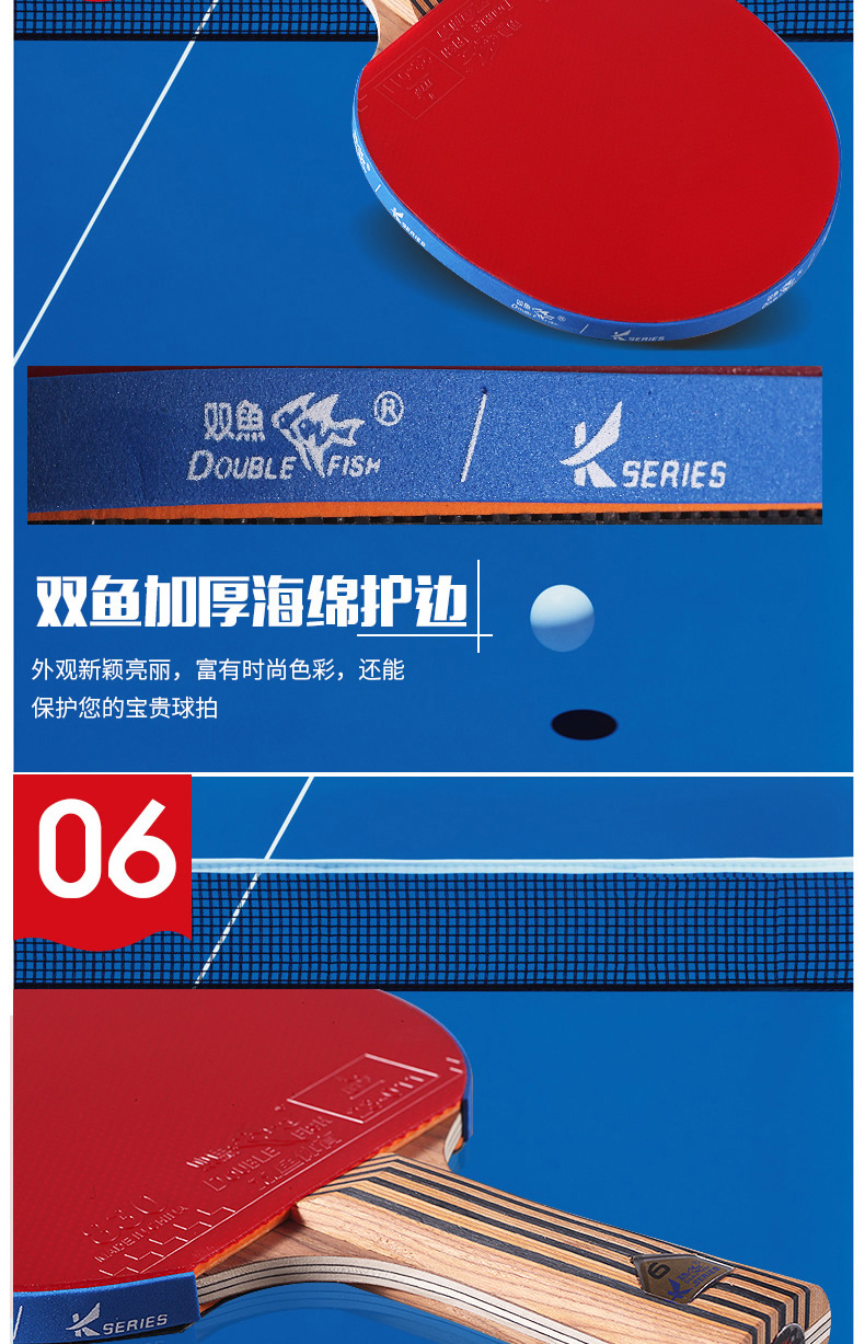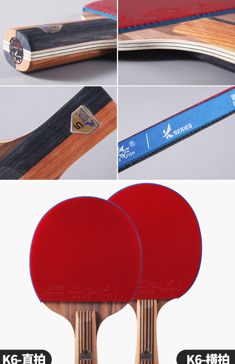 双鱼(DOUBLE FISH) 乒乓球拍单拍双面反胶专业入门级乒乓拍含拍套 K4直拍 自营