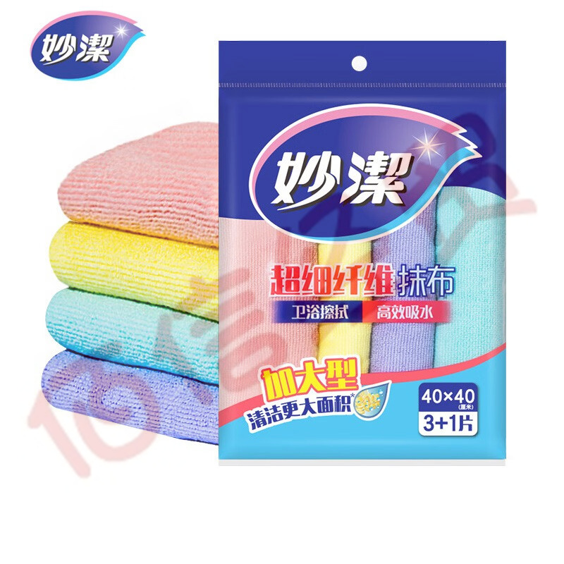 妙洁超细纤维抹布家务清洁擦拭布除尘布擦桌布吸水不掉毛多功能抹布 加大40*40cm 4片(10包起售) 自营