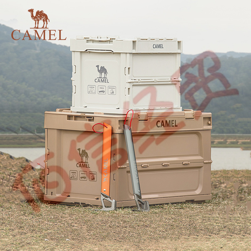 ¥303.40骆驼CAMELCROWN户外露营收纳箱折叠整理储物箱子野营桌装备用品便携杂物包袋 1142253011,卡其,50L