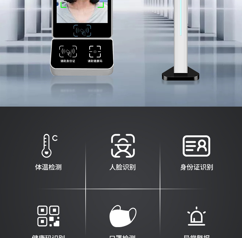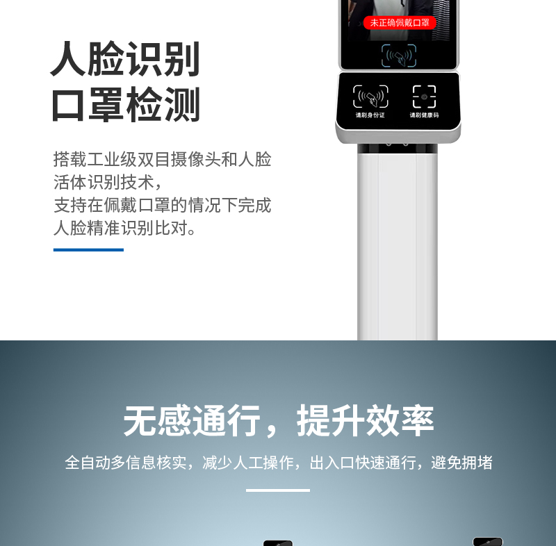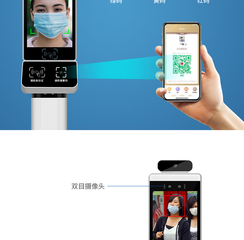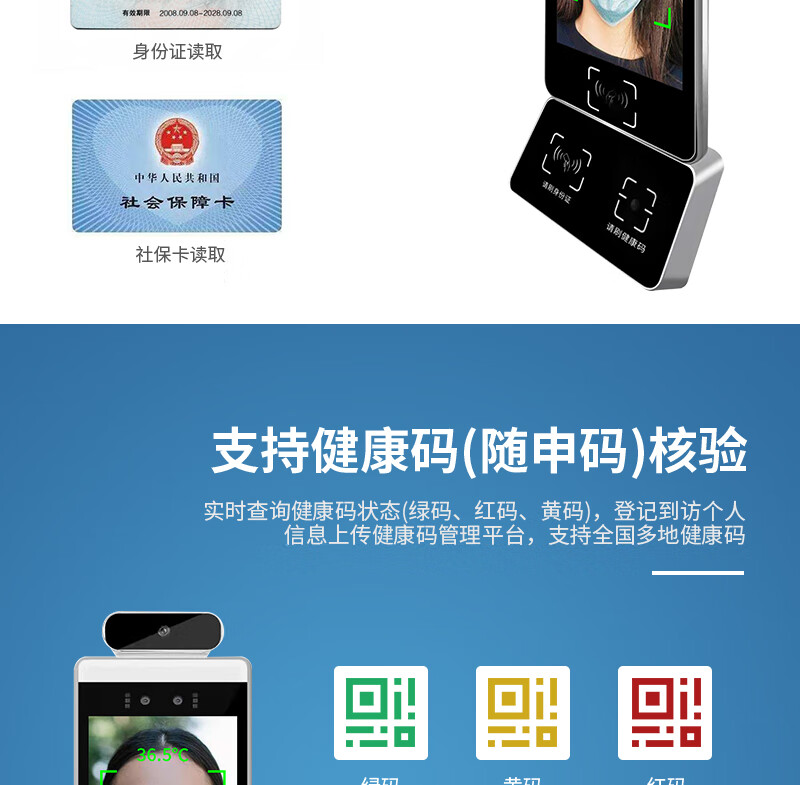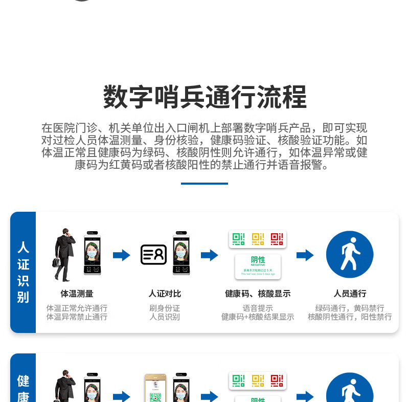 聚徽 数字哨兵电子哨兵健康码识别智能立式扫码核验设备人脸识别测温一体机门禁 闸机双机芯 自营