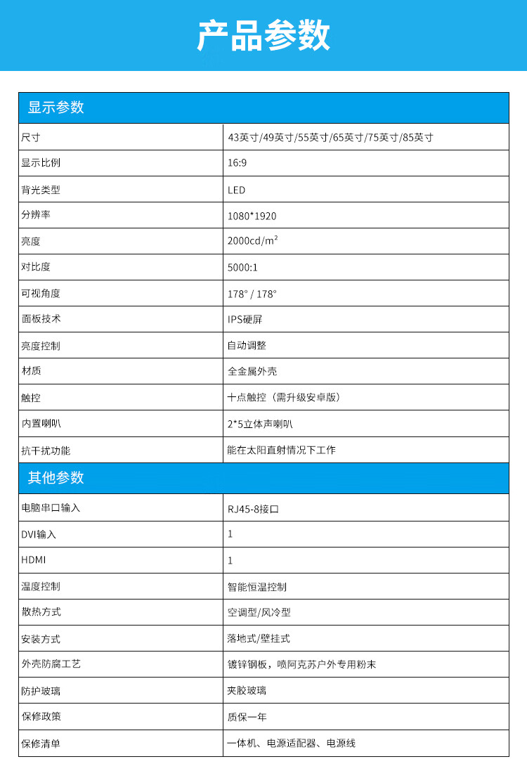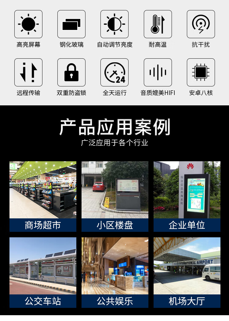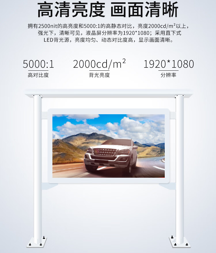 聚徽 户外广告机横屏雨棚款 室外高亮防水双立柱智能高清电容触摸一体机显示器 75英寸壁挂立式智能数字标牌 自营