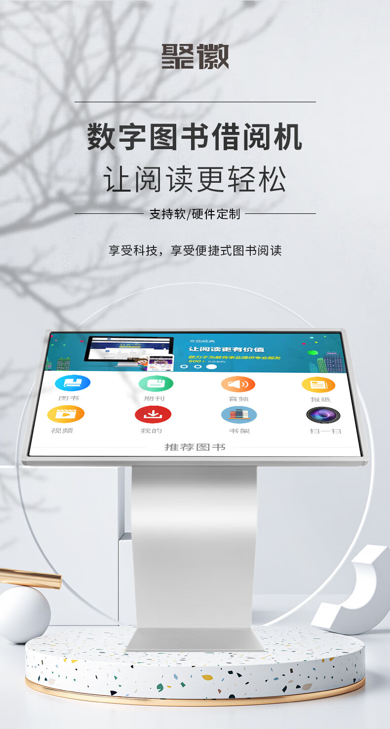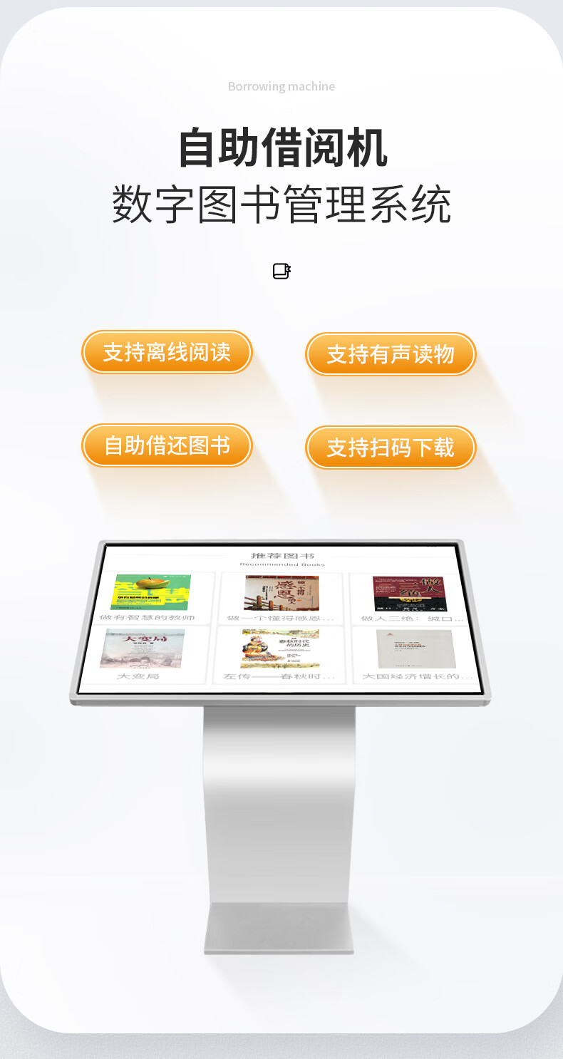 聚徽 65英寸卧式图书电子借阅机数字图书馆借书机瀑布流电子读报机阅读屏自助借还书机数字图书管理系统 自营