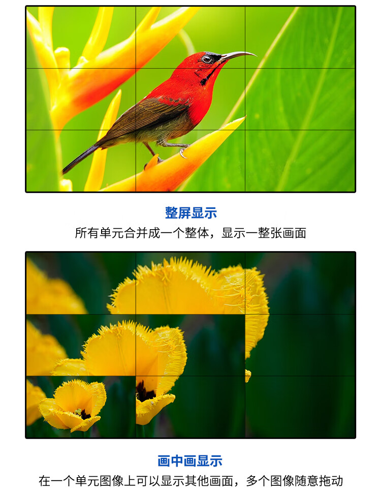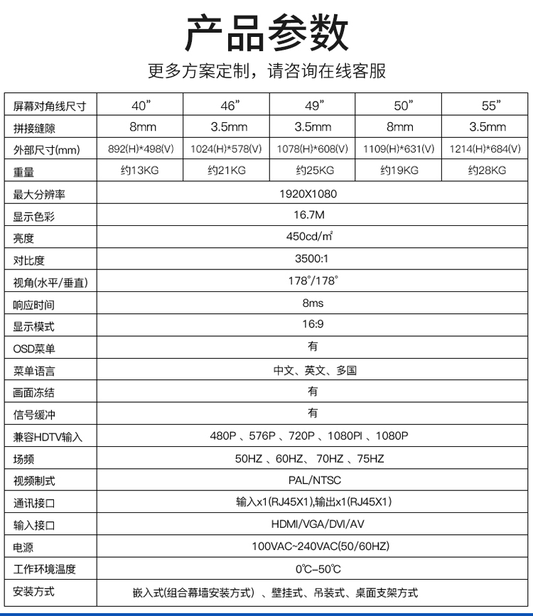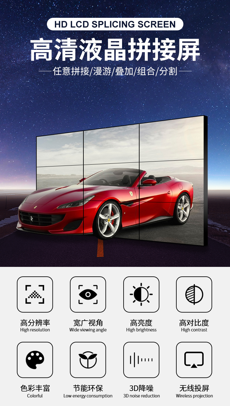 聚徽 液晶拼接屏 4K高清安防监控显示器 led无缝会议室大屏幕电视墙 商场广告显示屏46英寸0.88MM 自营