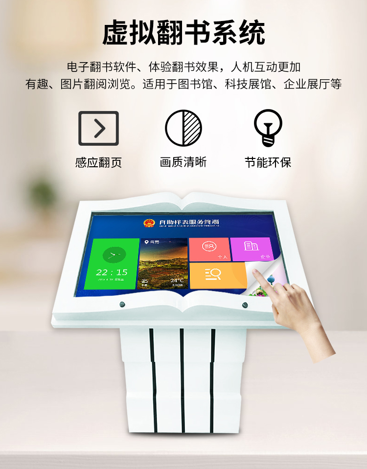 聚徽 隔空感应翻书一体机 卧式智能电子翻书机图书馆展馆互动触控查询机系统自助终端机55英寸(含软件) 自营