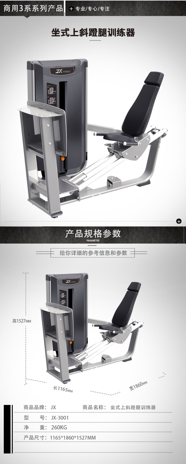 军霞(JUNXIA)JX-3001 坐式上斜蹬腿训练器 自营