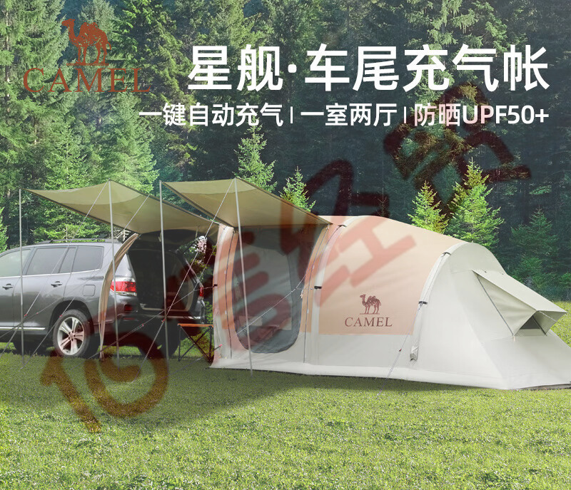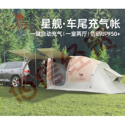骆驼(CAMEL)户外隧道帐篷露营装备防雨防晒一室两厅加厚自动充气车尾帐 冰咖色/浅卡色【涂银防晒】 自营