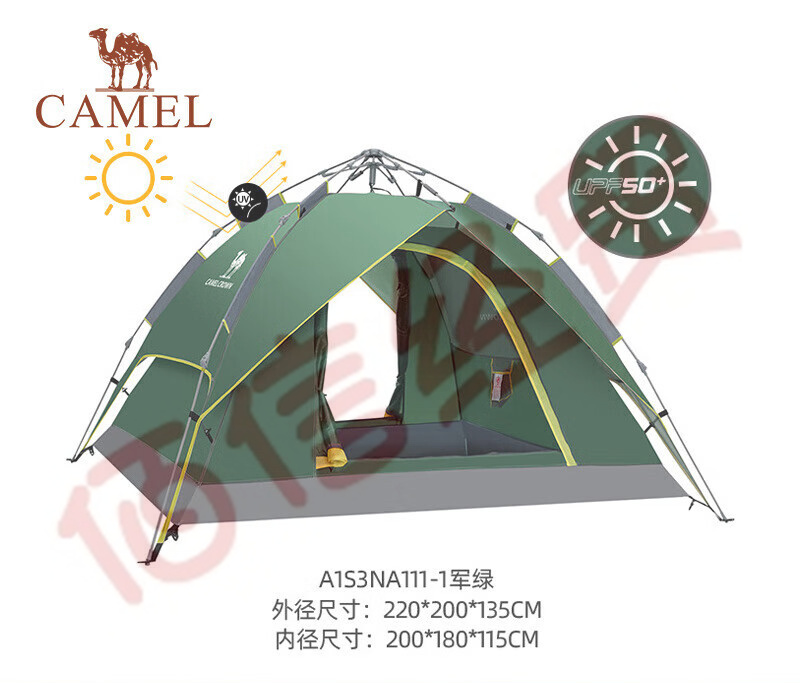 骆驼(CAMEL)【液压帐篷】户外露营自动弹开野餐便携式折叠双层防晒防雨3-4人 A111-1,军绿(升级防晒版) 自营