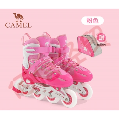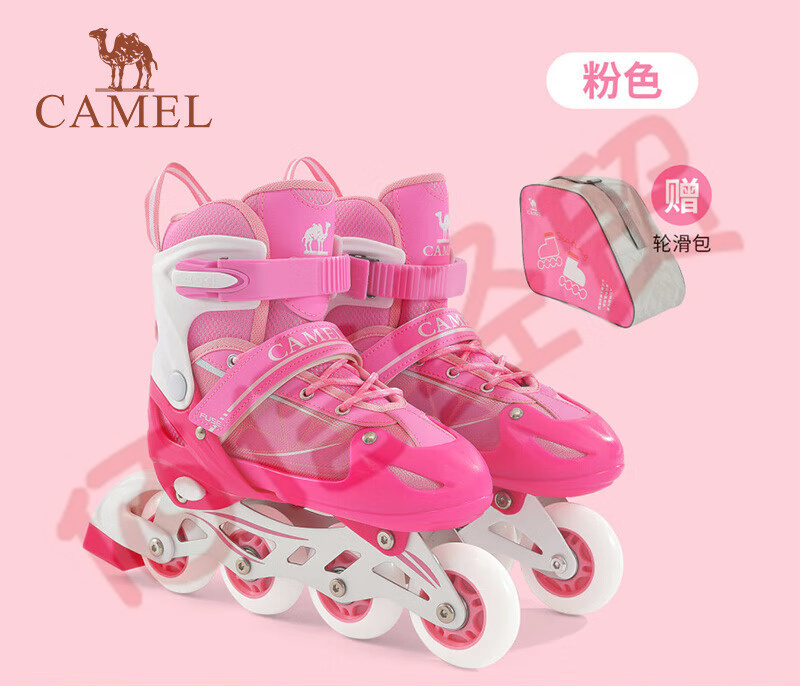 骆驼(CAMEL)溜冰鞋儿童初学者青少年专业轮滑鞋男童滑冰旱冰鞋女童可调节 A1223816813,粉色(送轮滑包) M(34-37码) 自营