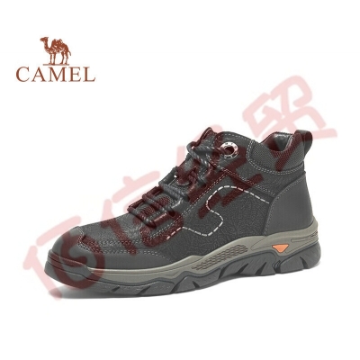 骆驼(CAMEL)男鞋高帮鞋男户外运动休闲工装靴皮短靴厚底男靴子 7014,黑色,男款 38 自营