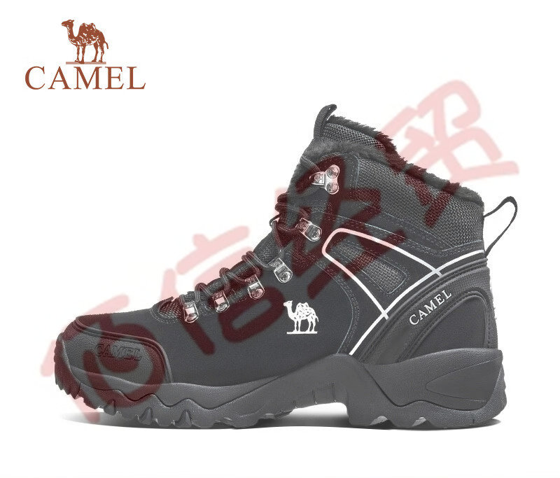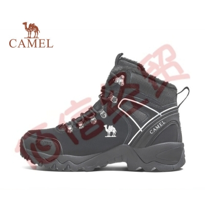 骆驼(CAMEL)雪地靴女高帮加绒保暖耐磨男鞋情侣登山户外徒步鞋子 A142303905,黑/银灰,男 38 自营