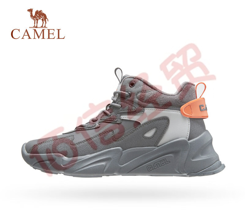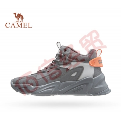 骆驼(CAMEL)男鞋高帮款厚底鞋子黑色潮革面休闲运动鞋 A142363875,深灰,男款 39 自营