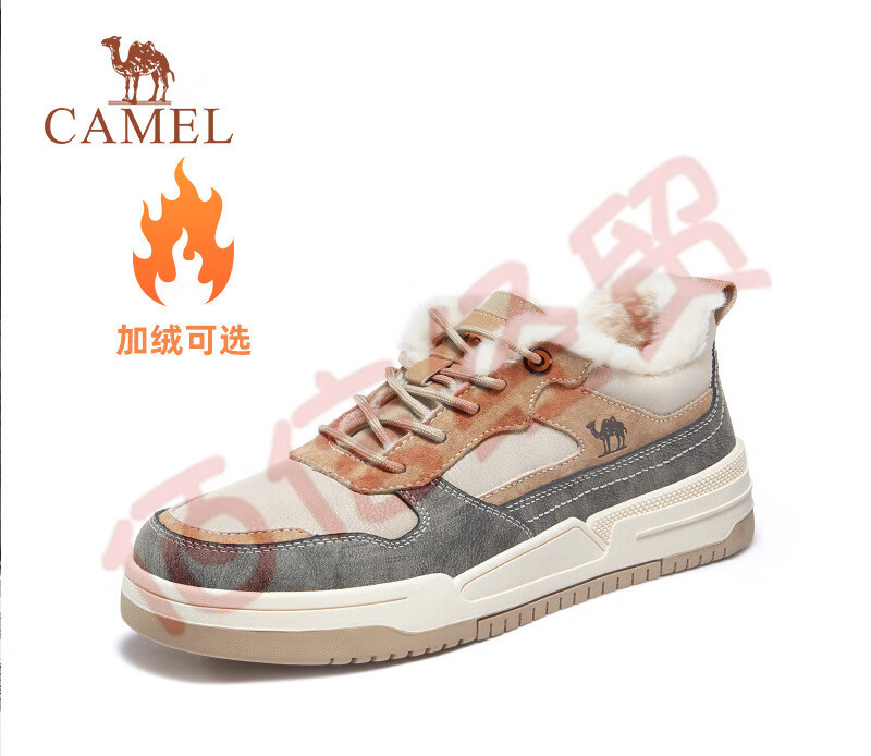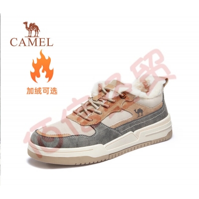 骆驼(CAMEL)男鞋款男士板鞋潮流百搭加绒小白鞋运动休闲 GE12235350R,沙/灰,男(加绒) 38 自营