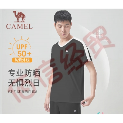 骆驼(CAMEL)羽毛球服套装男运动上衣女速干短裤乒乓球网球专业训练服夏季 幻影黑 S 自营