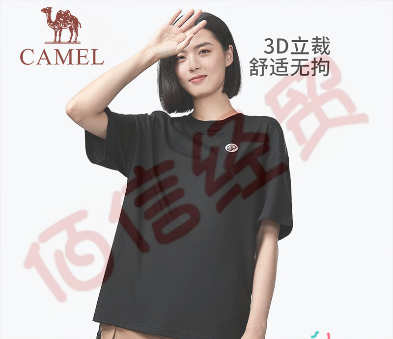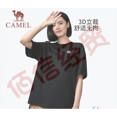 骆驼(CAMEL)【熊猫】户外吸湿速干男女情侣短袖上衣春夏宽松运动服装 A13BAVV112,幻影黑,男女同款 S 自营