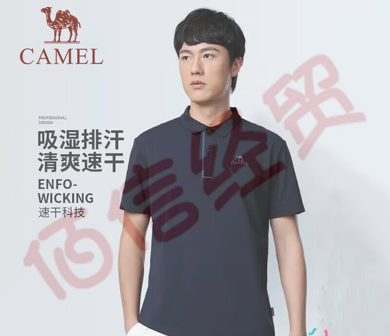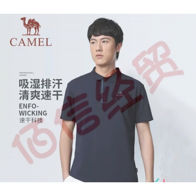 骆驼(CAMEL)男装短袖速干POLO衫2023春夏季时尚撞色领口宽松上衣 A13BAVV017,墨蓝,男 L 自营