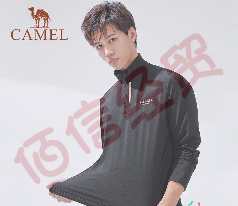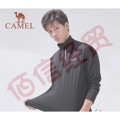 骆驼(CAMEL)运动长袖T恤男士薄款运动快干衣服立领针织上衣 基础黑 XL 自营