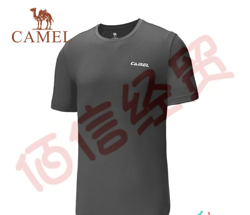 骆驼(CAMEL)运动T恤男女2023春夏透气简约百搭户外休闲情侣圆领T恤 C1S286915,黑色,男 M 自营