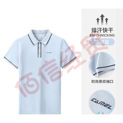 骆驼(CAMEL)男装速干POLO衫男士2023春夏款翻领宽松透气情侣短袖女上衣 J13BA23014,冰爽蓝,男 M 自营