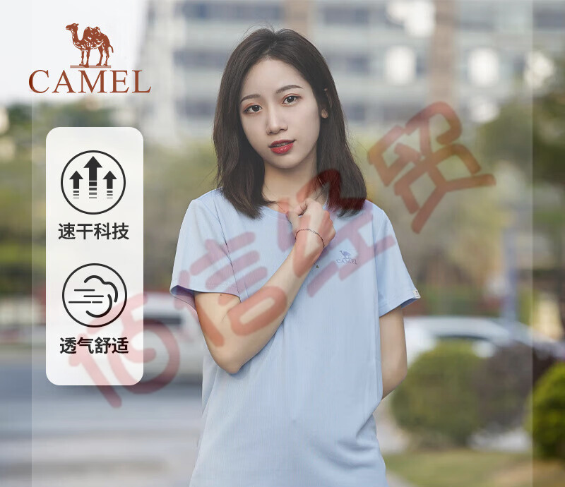 骆驼(CAMEL)运动T恤男速干短袖2023夏季透气凉感休闲上衣运动T恤女 7A22224459,水波蓝,女 M 自营